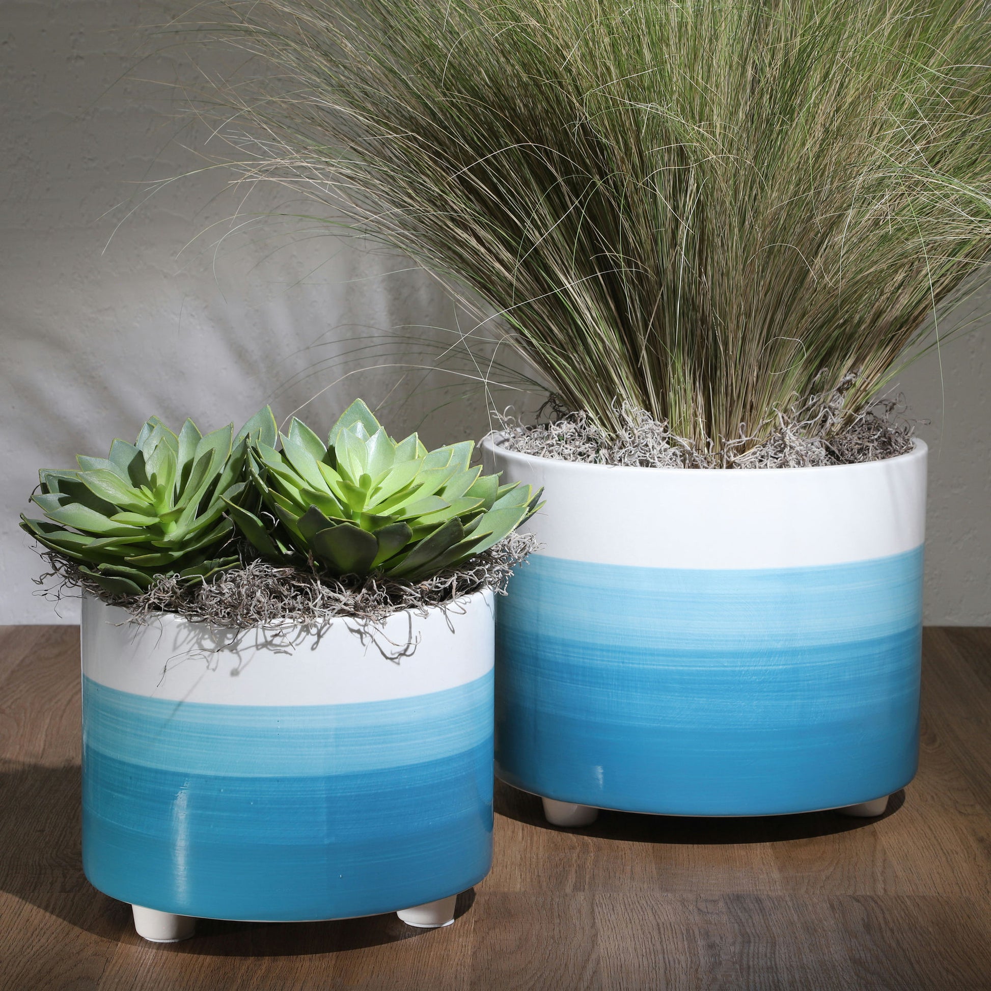 S/2 10/12" Footed Planter, Blue