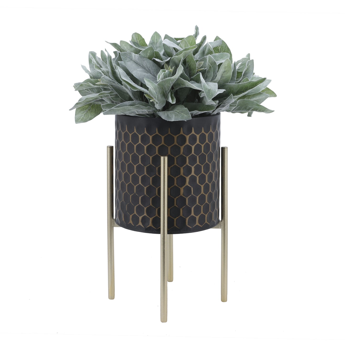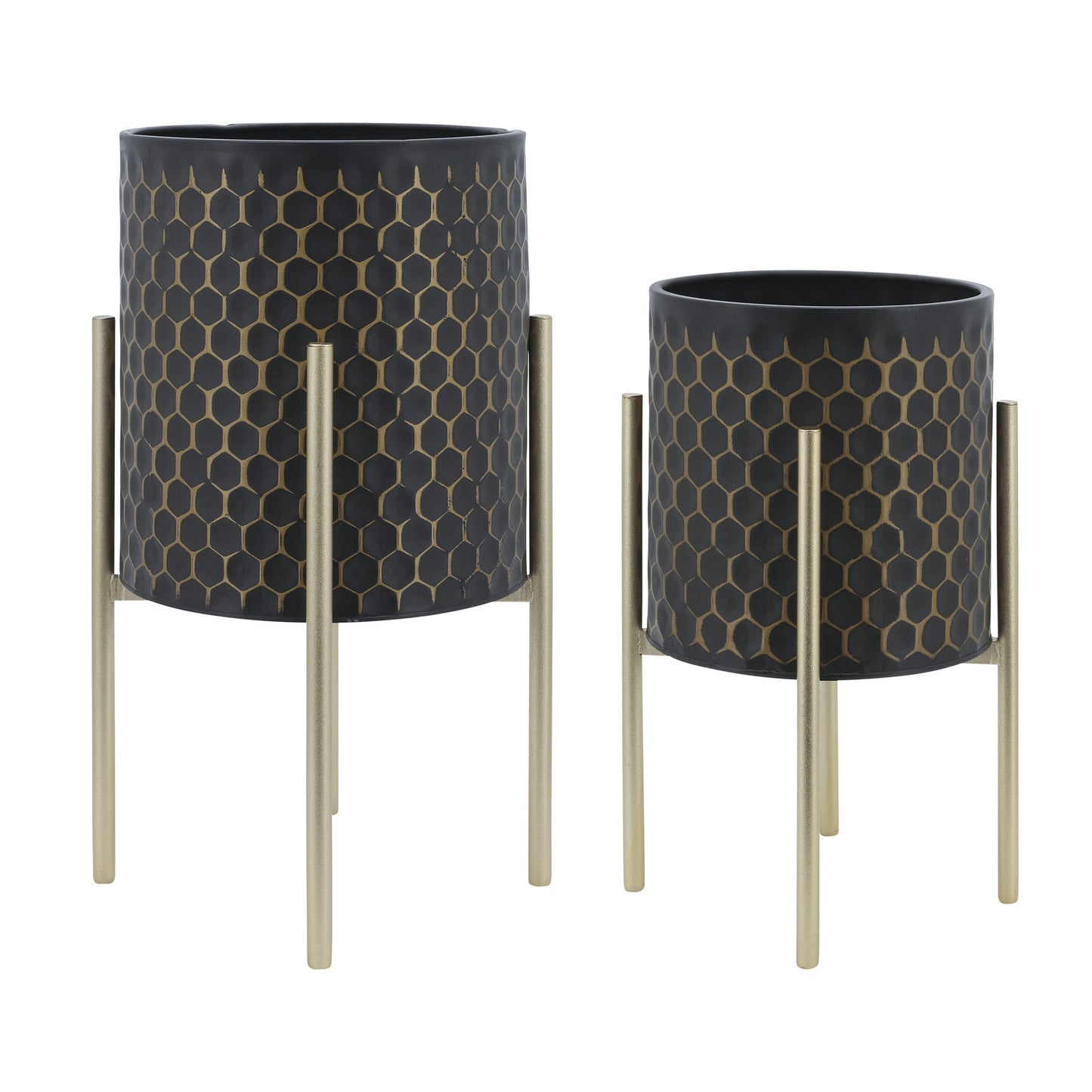 S/2 3d Honeycomb Planter On Metal Stand, Blk/gld
