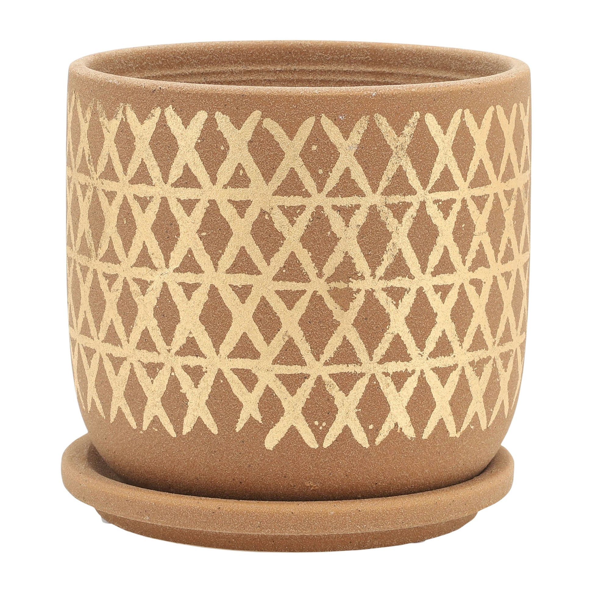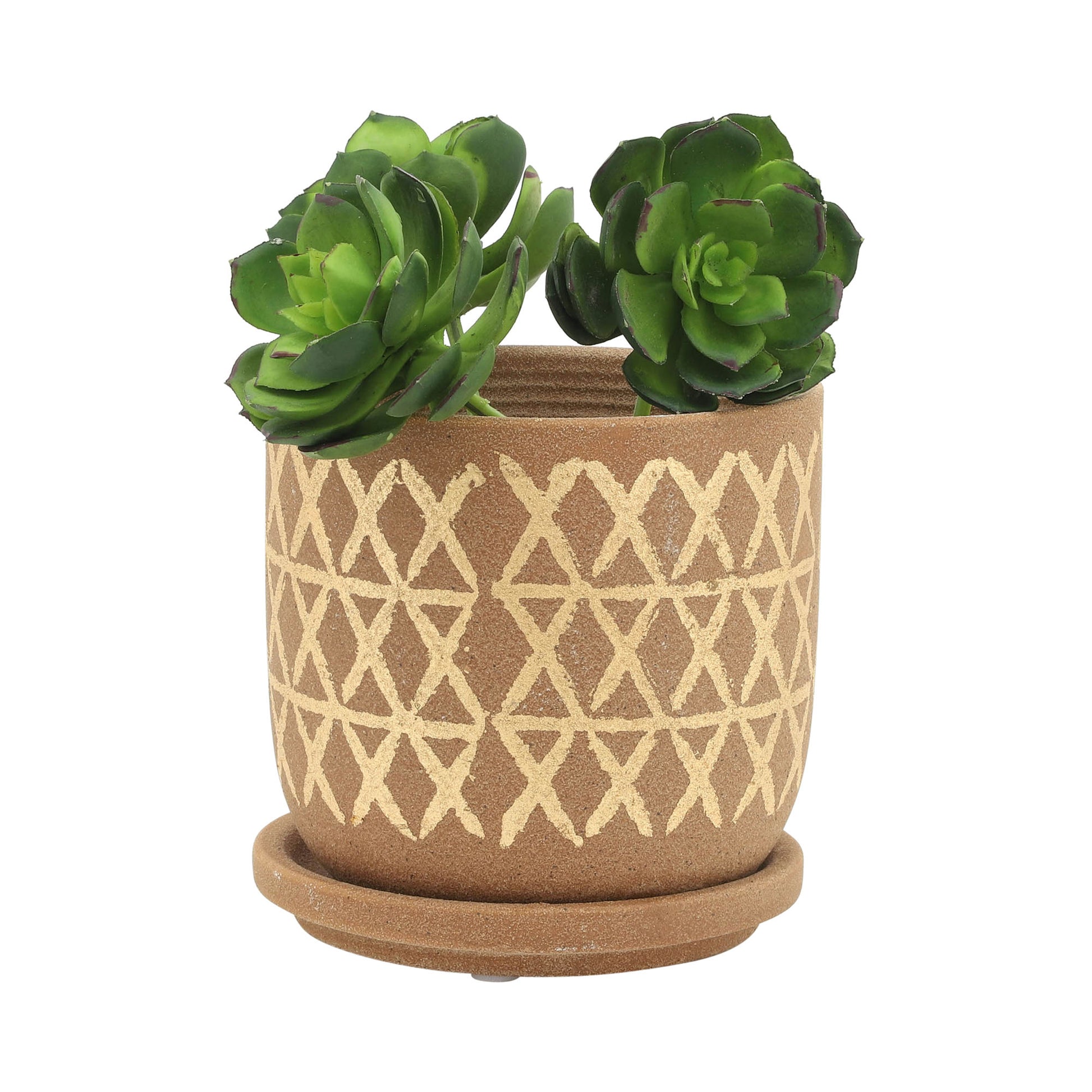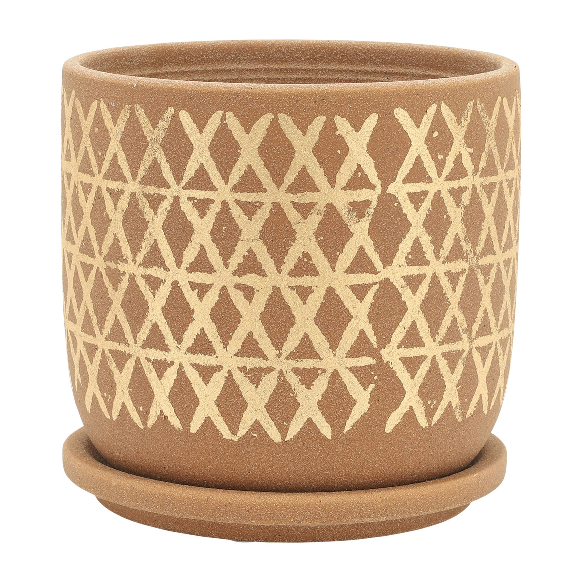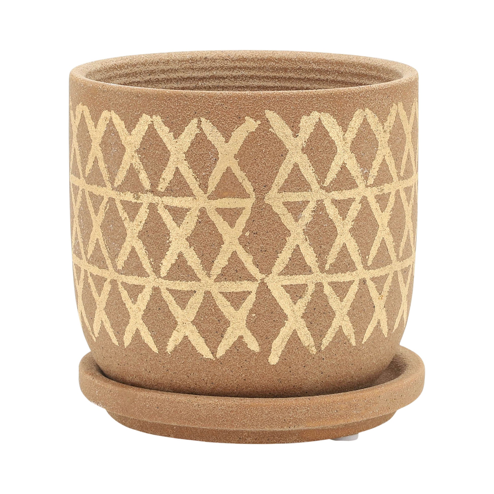 S/2 5/6" Cross Planter W/ Saucer, Tan