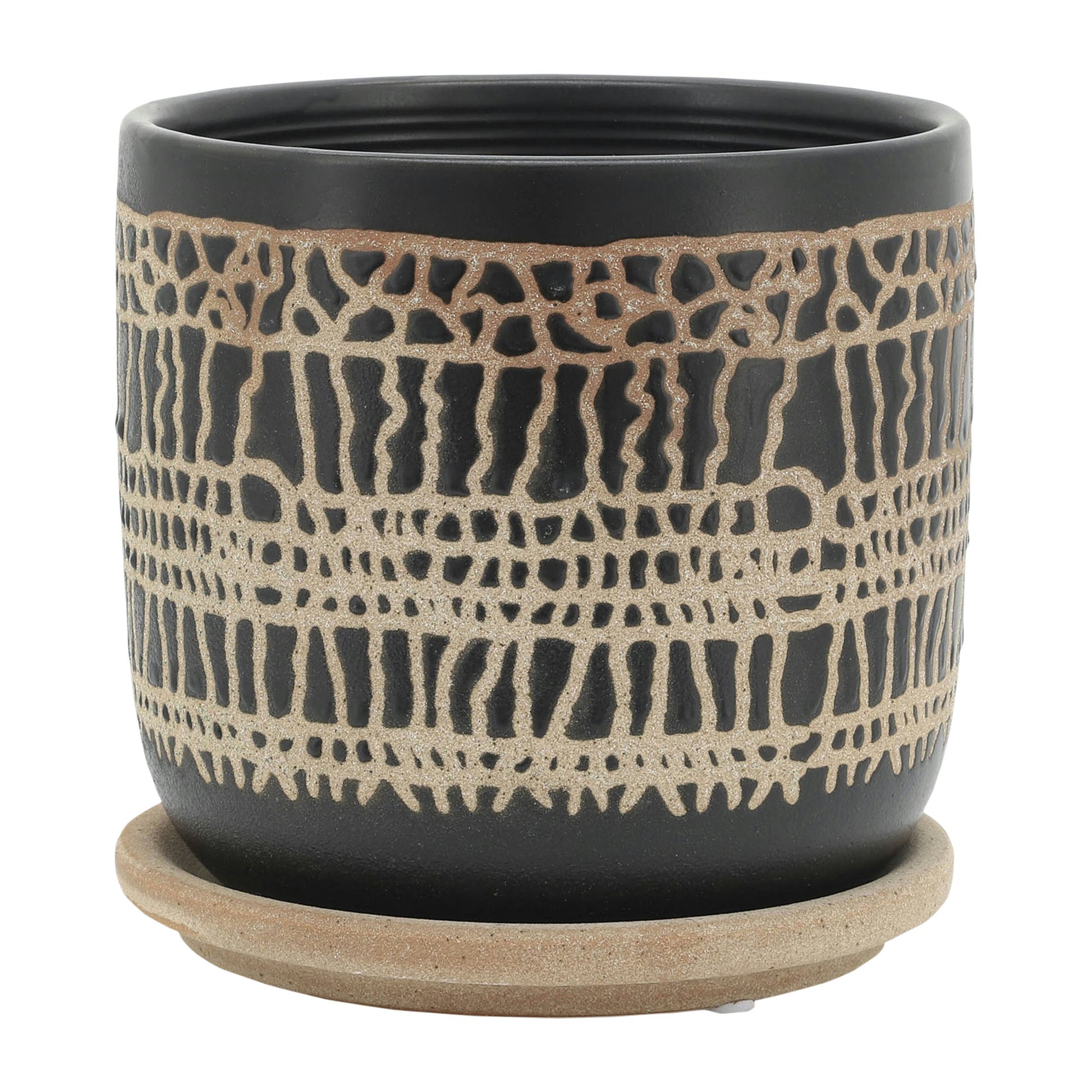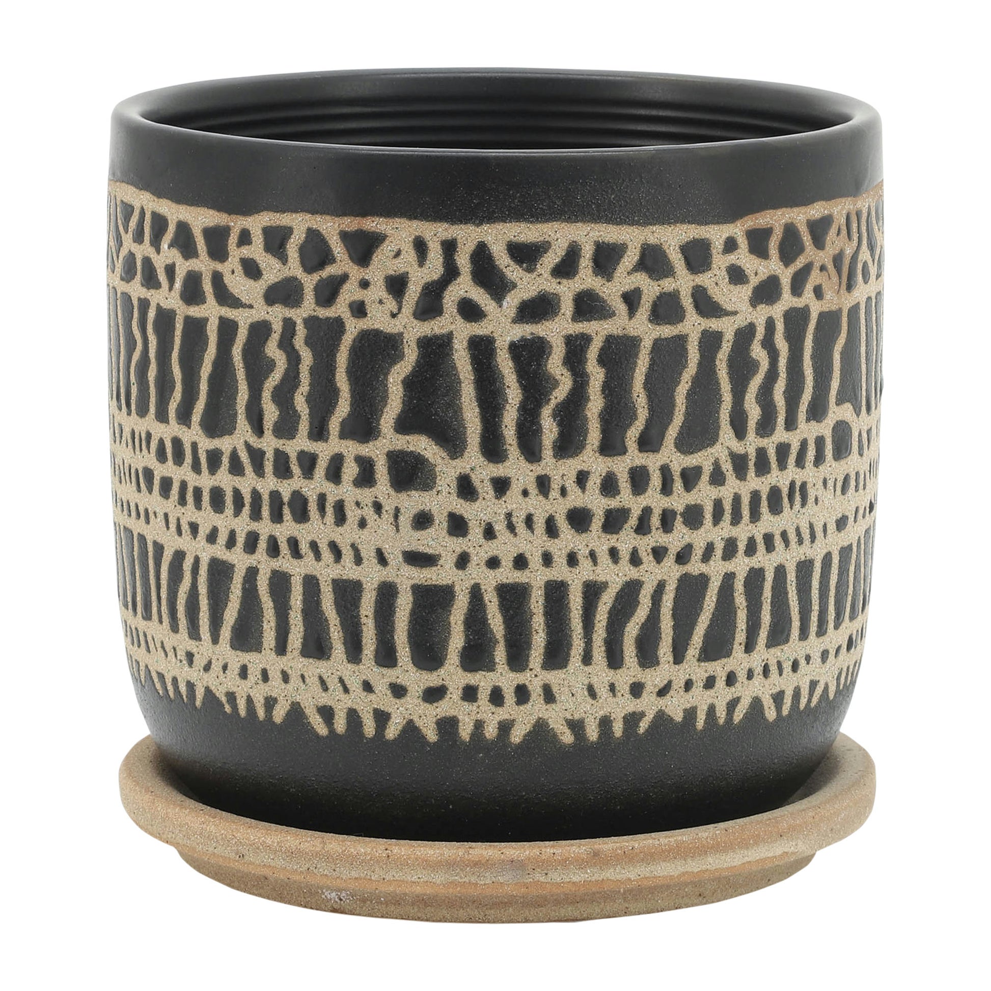 S/2 5/6" Glazed Planter W/ Saucer, Black