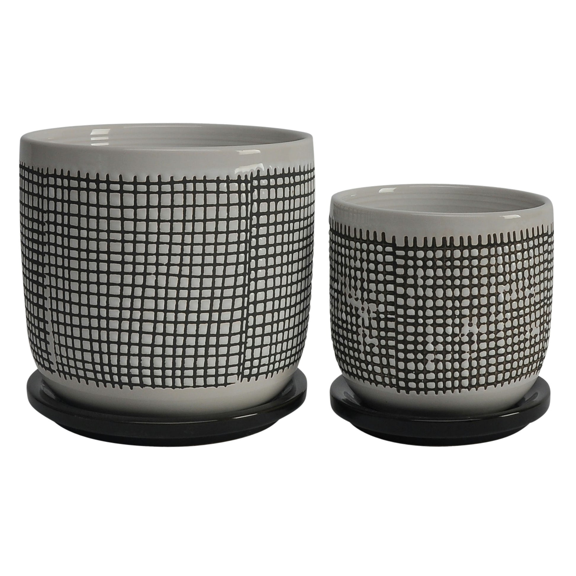S/2 5/6" Mesh Design Planter W/ Saucer, Gray