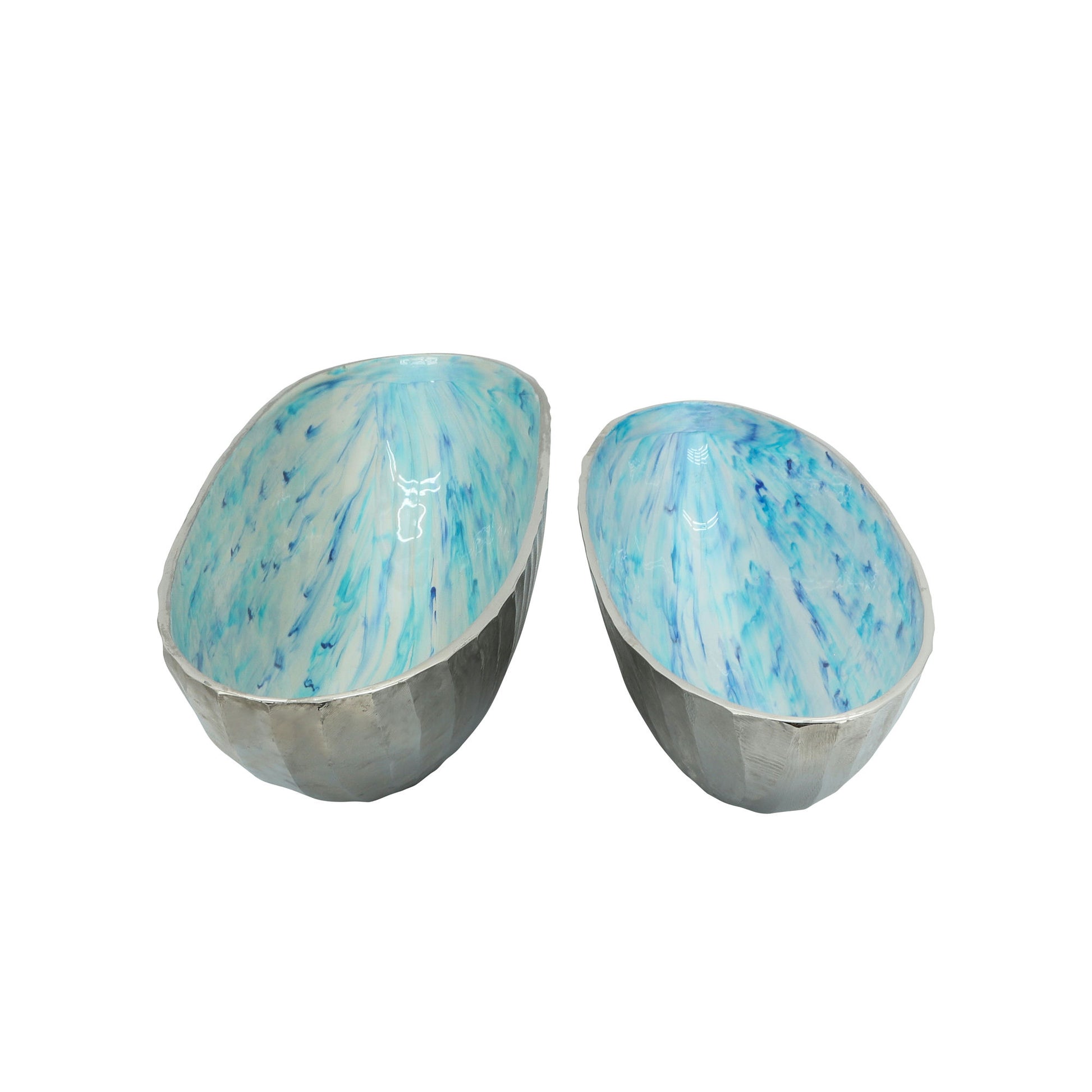 S/2 Aluminum 22/24" Oval Bowl, Sky-blue. Whether You're Displaying Faux Fruit In The Kitchen Or At The Entry Way To Put Mail Or Keys, This Decorative Serving Bowl Makes The Perfect Pick To Refresh Your Everyday With A Splash Of Style. Crafted From Aluminum, It Showcases An Oval Shape With A Ribbed Exteriors For An Eye-Catching Silhouette. This Stunning Set Of Decorative Bowls Features A Beautiful Sky-blue Pattern.