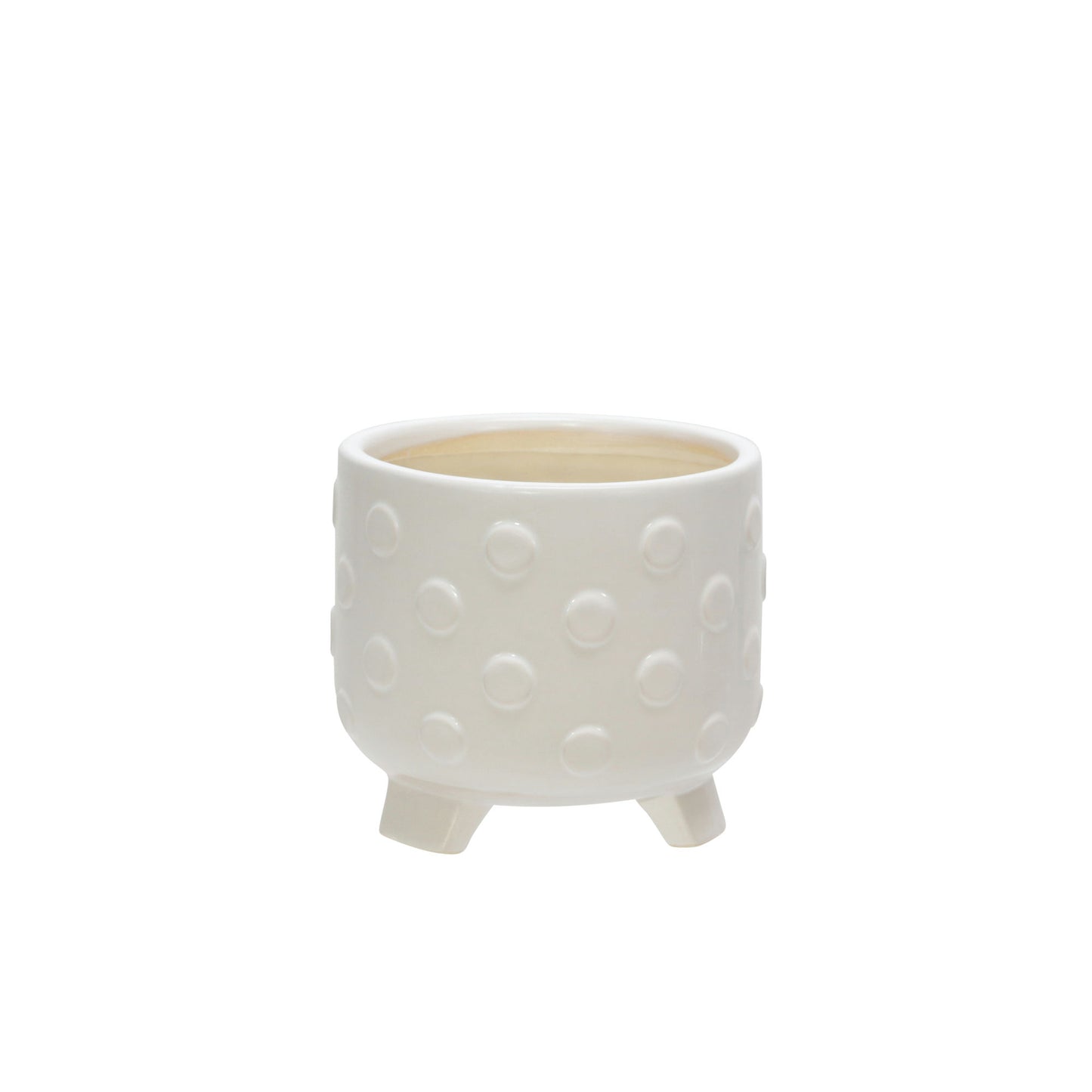 S/2 Ceramic 6/8" Footed Planter W/ Spots, White