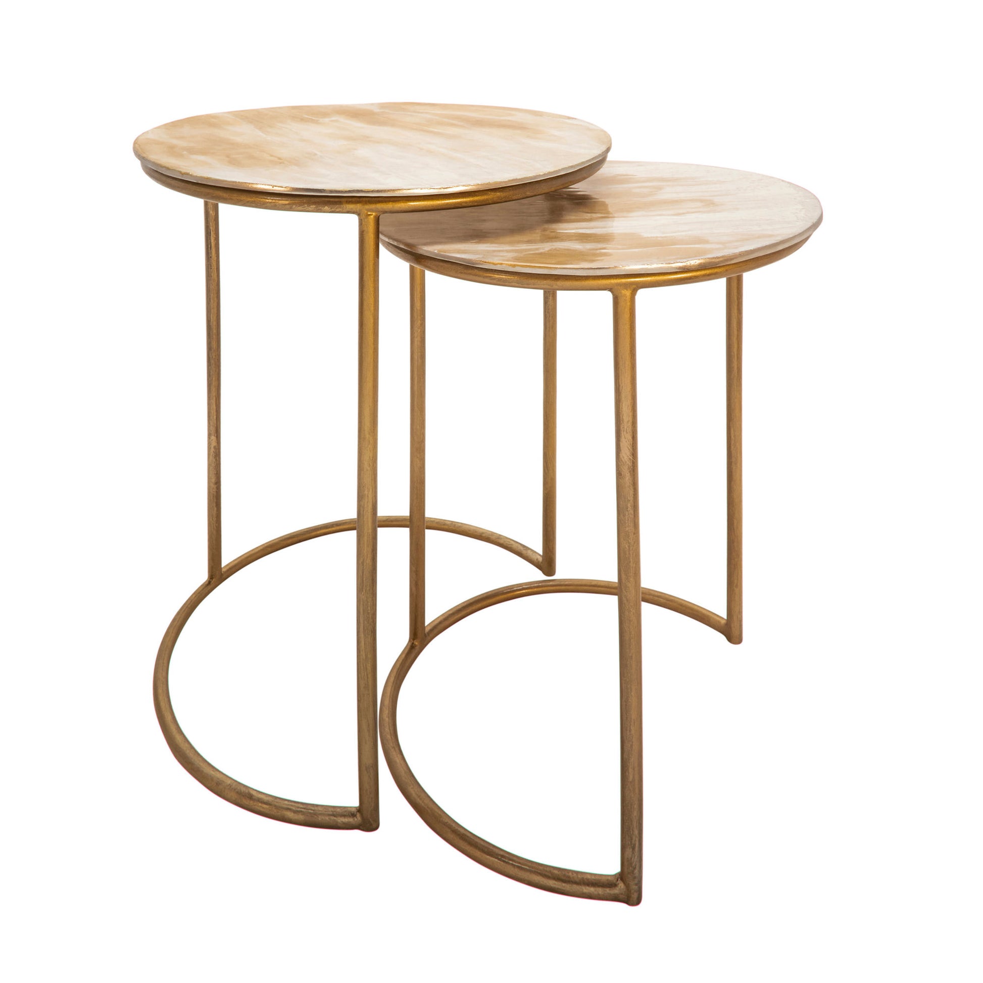 Cream colored tables top, inspired by abstract painting and warm colors. This set of 2 nesting tables come with a sturdy golden base that will beautifully compliment any glamorous decor. With a marbles tables top for added elegance. The perfect home decor accessory to accent any corner, entryway or table in your living room, bedroom, and office. Sagebrook Home has been formed from a love of design, a commitment to service and a dedication to quality. They create and import fashion forward items in the most popular design styles. Backed with years of experience in the textile field, They are now providing a complete Home decor story. the combination of wall decor, furniture, lighting and Home accessories are all coordinated with textiles to provide a complete Home look. Sagebrook Home is committed to providing the best Home decor and accent pieces at value prices.