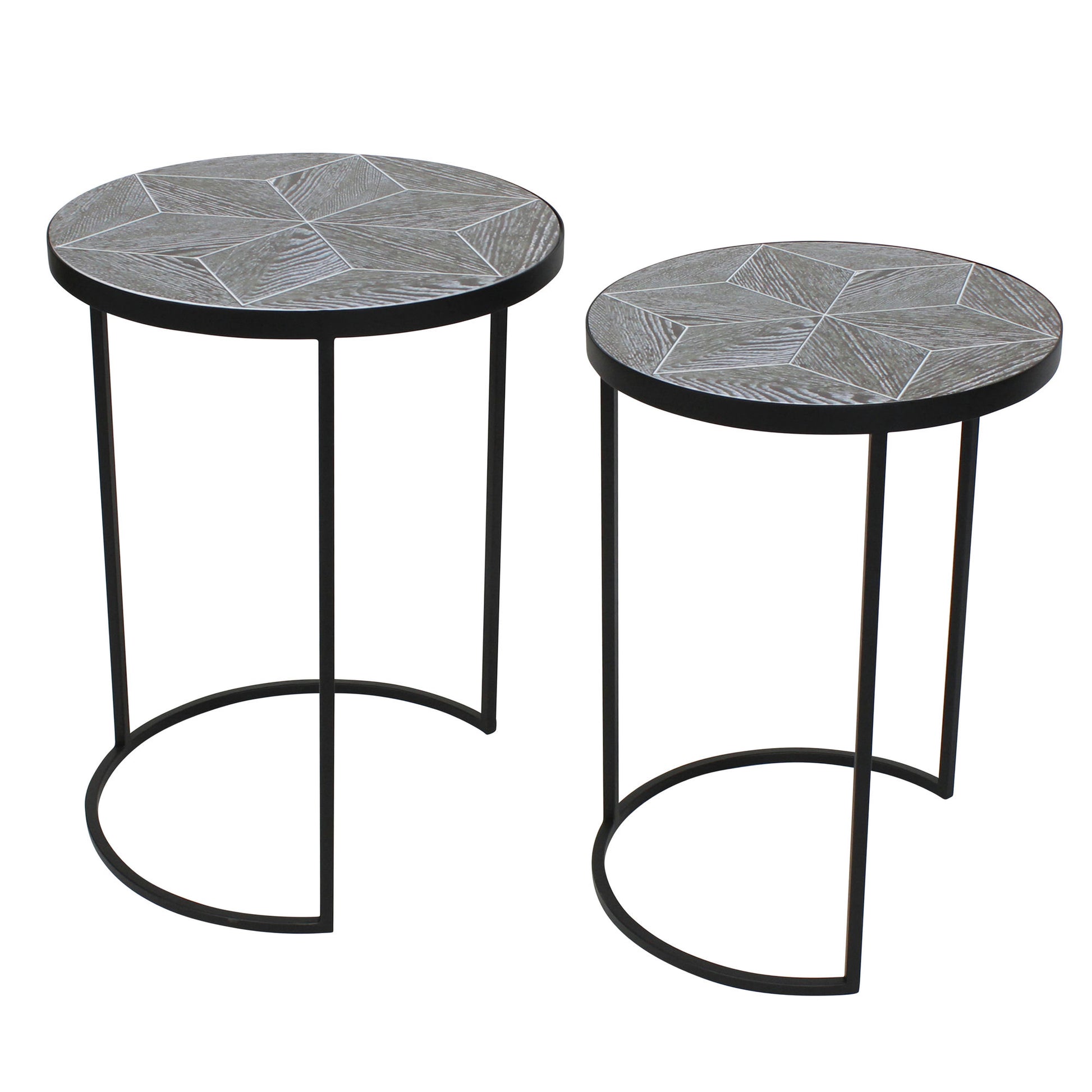S/2 Metal/wood 22/24" Round Accent Tables, Black