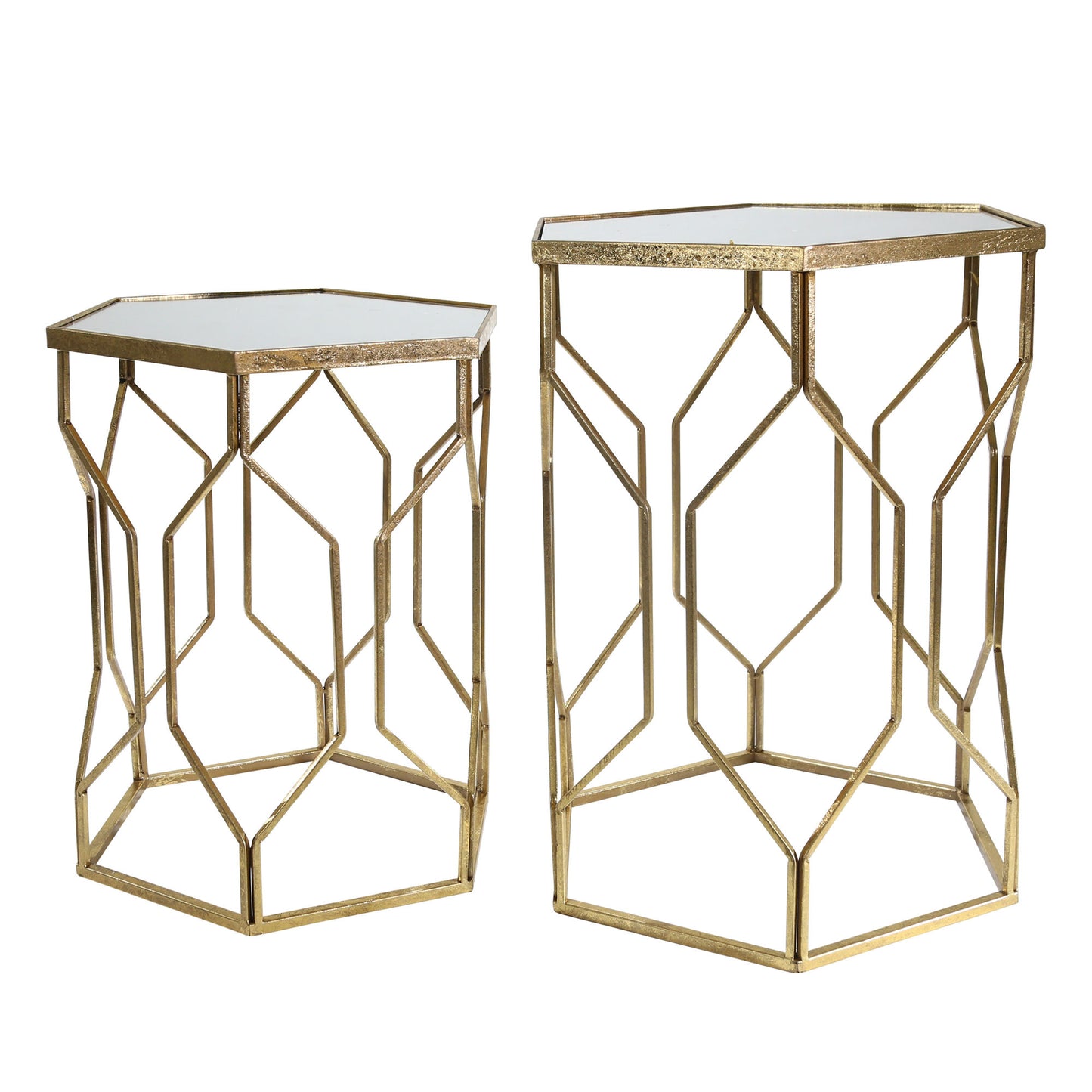 S/2 Mirrored Hexagon Accent Tables 25/21" Gold