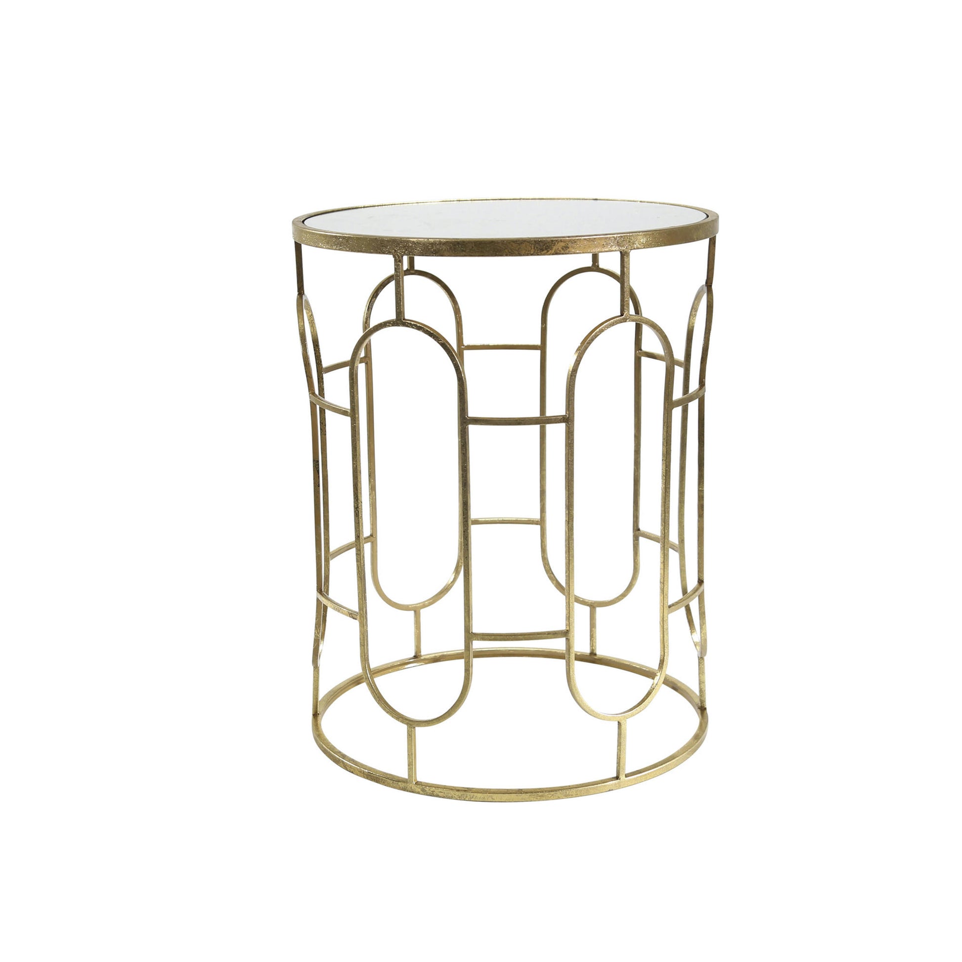 With its clean lines and open frame, this end table brings a touch of airy, contemporary style to your space. Crafted from metal, its frame sports a solid finish for understated appeal. Up above, there is a round mirror. Providing an easy to clean surface to set down snacks, a lamp magazines and more. This table is a fine fit for smaller spaces.