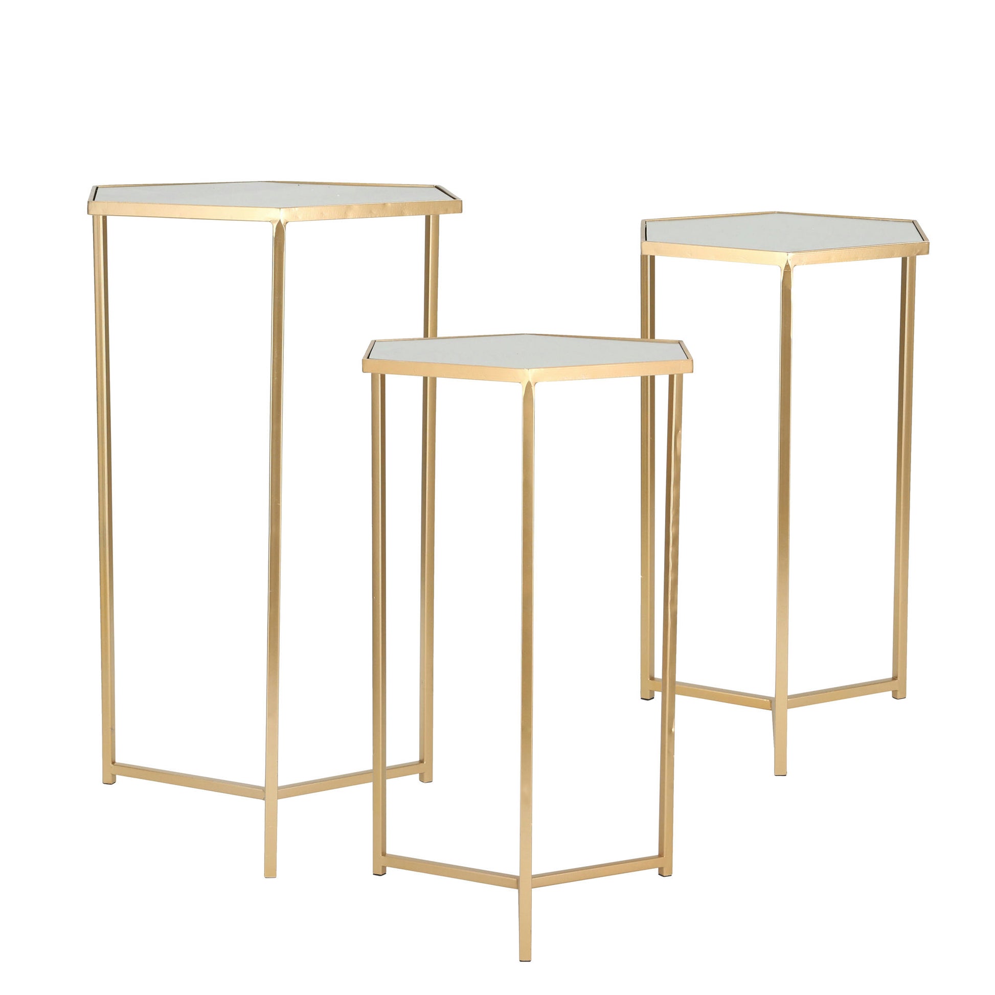 S/3 Metal/mirror 28/25/22" Hexagonal Accent Tables