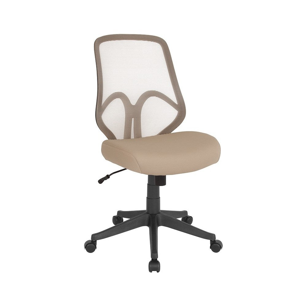 Breathe new life into your office, dorm or home office with this comfortable High Back Mesh Chair. The transparent mesh back allows air to circulate, keeping you cool no matter how high the pressure gets. The swivel seat is foam padded and has a waterfall front for leg comfort. Built-in lumbar support helps prevent back strain and muscle fatigue. Raise and lower the seat using the pneumatic seat height adjustment lever, conveniently located below the seat. The heavy-duty, nylon base with dual wheel casters makes it easy to roll across the floor. Whether you're studying, browsing or on a tight deadline, this stylish chair will keep you cool and comfortable throughout your busy day. [GO-WY-193A-LTBN-GG]