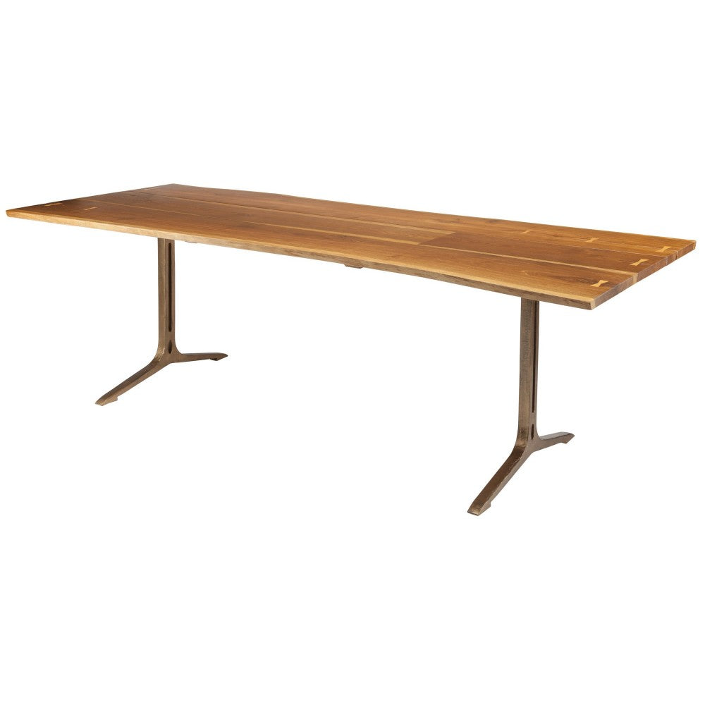 Stability and durability define the Samara dining table in 78 inch oak with blackened cast iron legs. Updated with a French industrial colonial aesthetic, this stiking dining table is practical while artful and elegant. Made of recycled metal pedestal feet and live edge planking, the Samara dining table is a great addition any space.
