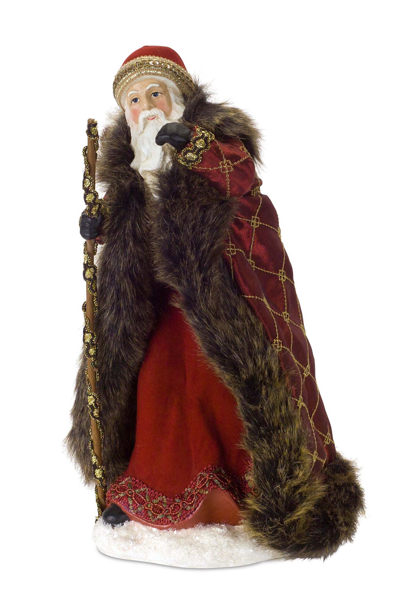 Ring in the holiday season with this traditional Santa Figurine. The bold red and gold color scheme paired with the textured robe design is the perfect combination to create a timeless Christmas piece. The quality paper pulp and polyester composition is sure to last for seasons to come.