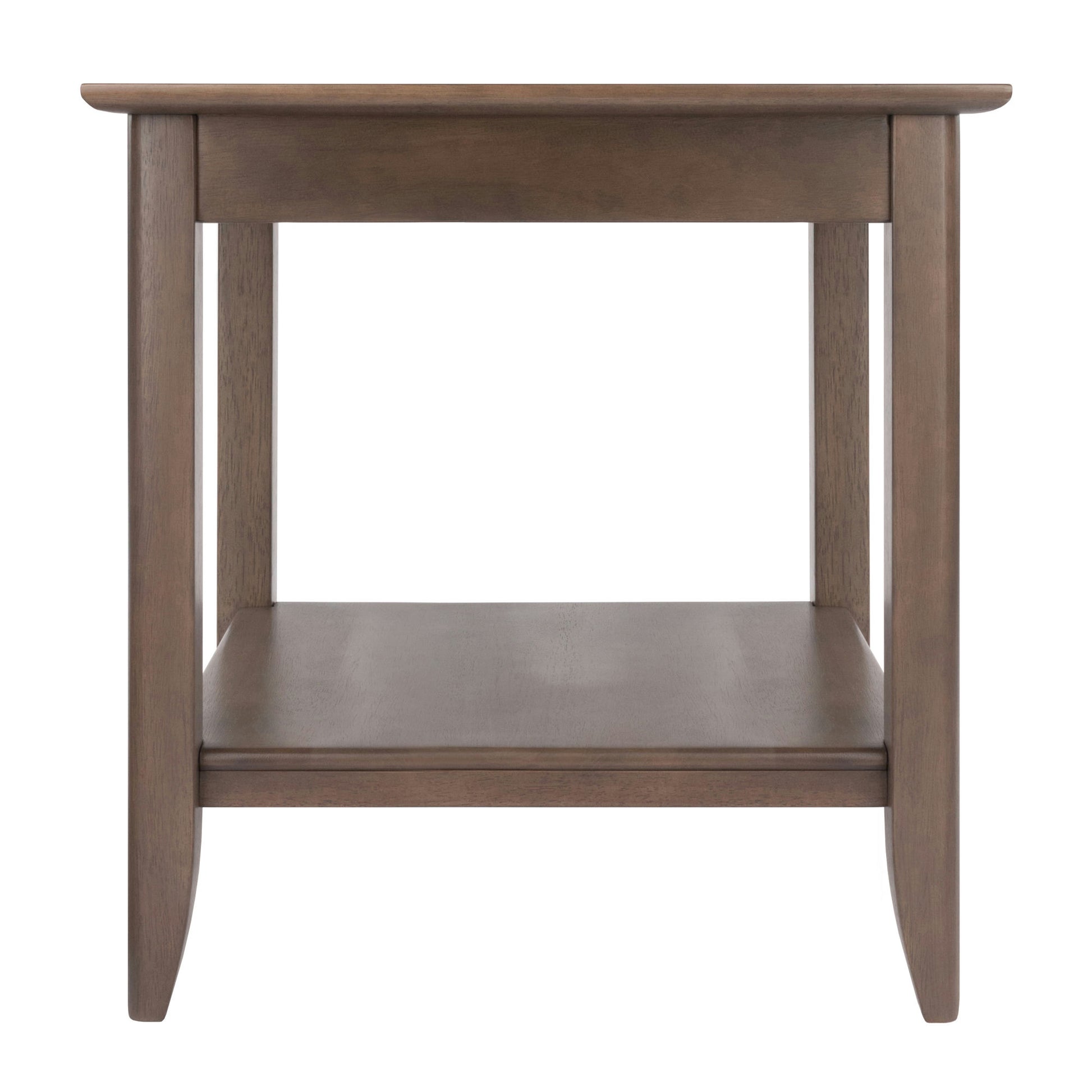 The symmetry of a central wood inlay adds a distinct touch to the Santino End Table. Crafted in an Oyster Gray finish with a darker gray inlay, this versatile accent table will fit in beautifully with any décor in your living room or bedroom. Made of Solid Wood with the contrasting inlay made of composite wood and wood veneer.