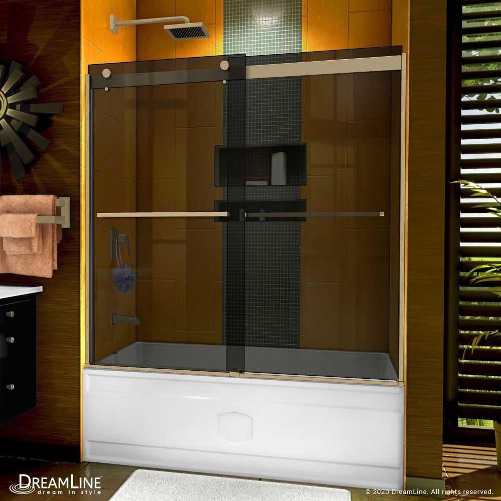 Sapphire 56-60 in. W x 60 in. H Semi-Frameless Bypass Tub Door in Brushed Nickel and Gray Glass