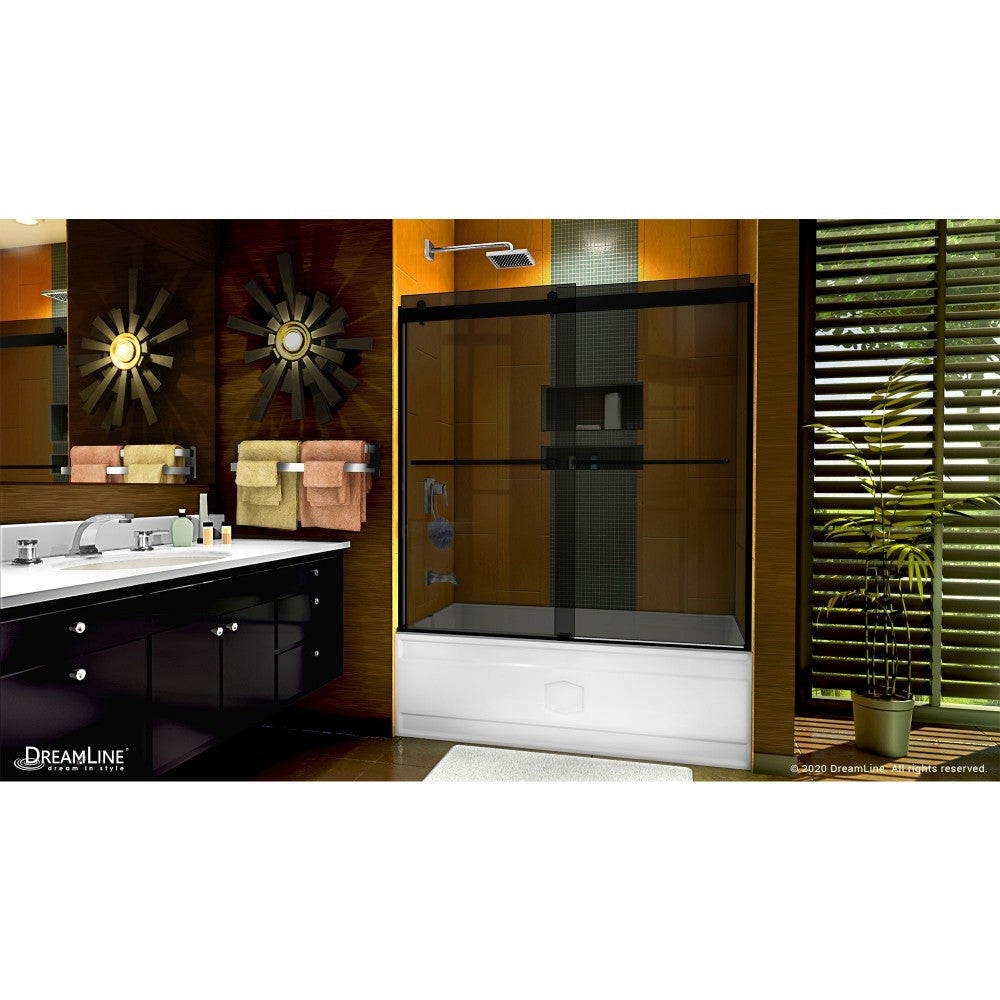 Sapphire 56-60 in. W x 60 in. H Semi-Frameless Bypass Tub Door in Satin Black and Gray Glass