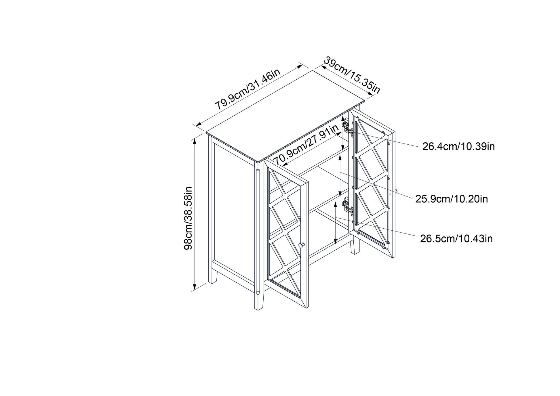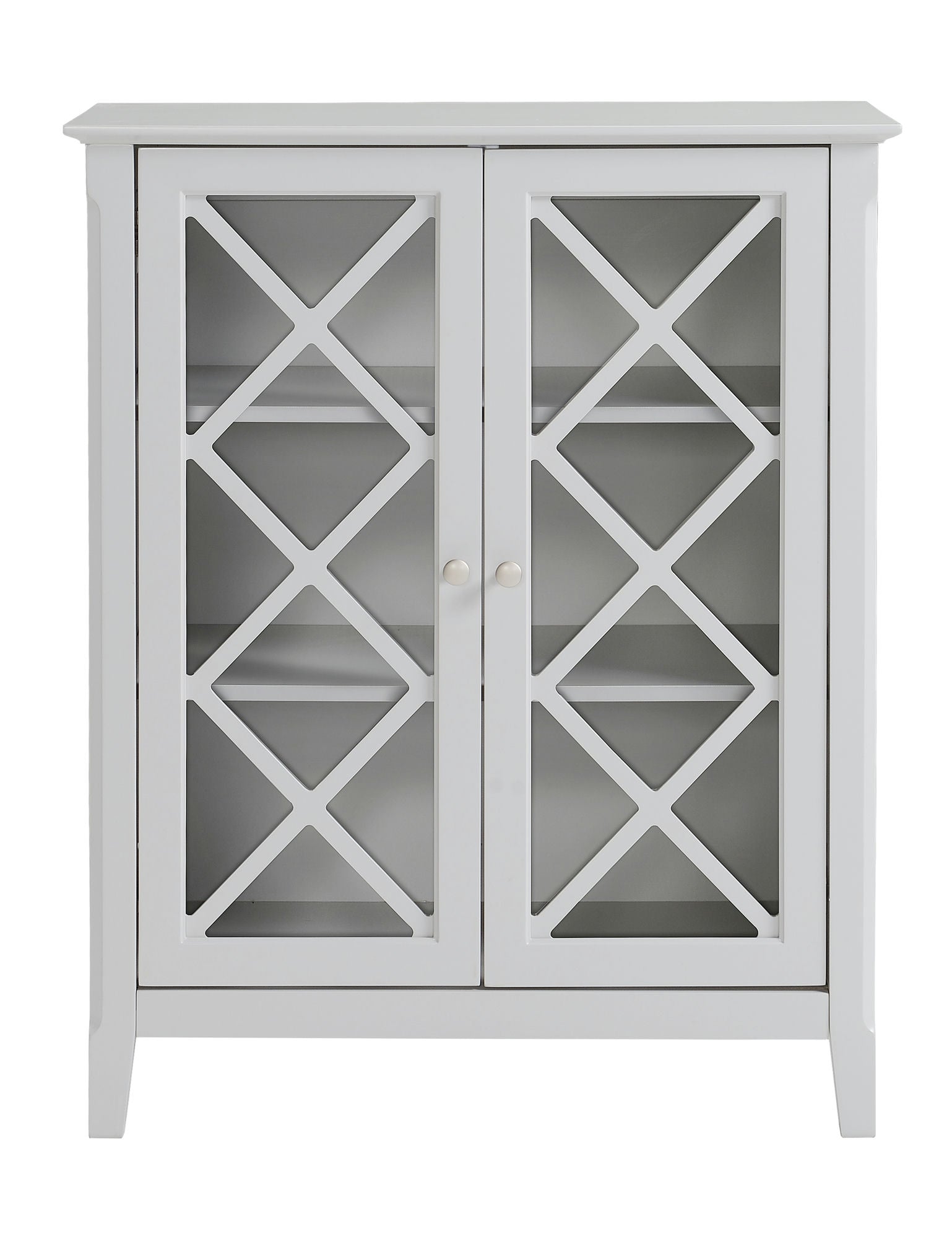 This elegant cabinet is sure to make a statement in any room. Two adjustable shelves esure plenty of space for storage. Cross pattern window panes give this cabinet an upscale look. Available in both white and light gray finish.
