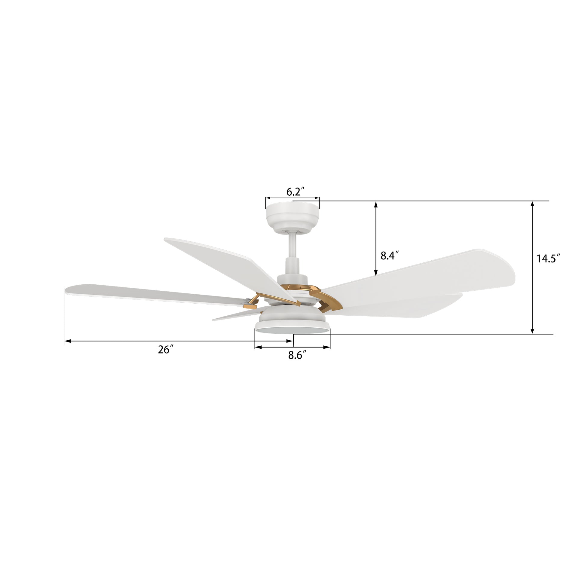 Savili 52 Inch 5-Blade Smart Ceiling Fan - White