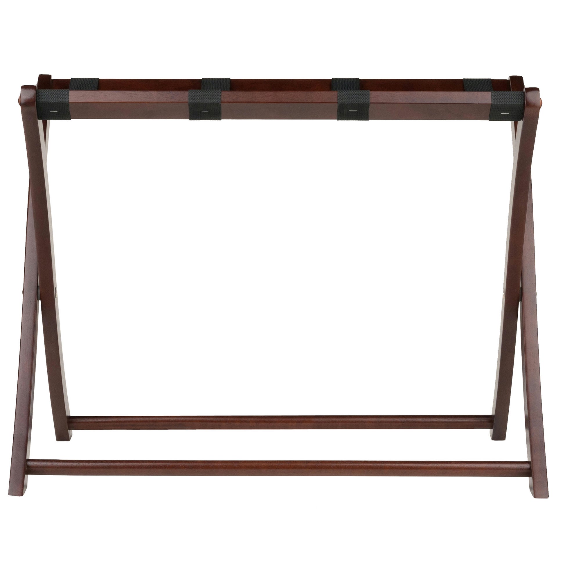 Overnight guests will thank you for putting out the Scarlett Luggage Rack, where they can set their luggage and unpack. Made of Solid Wood in a rich Cappuccino finish with thick, sturdy straps, the rack will hold a heavy suitcase. The curved-leg frame folds easily when not in use.