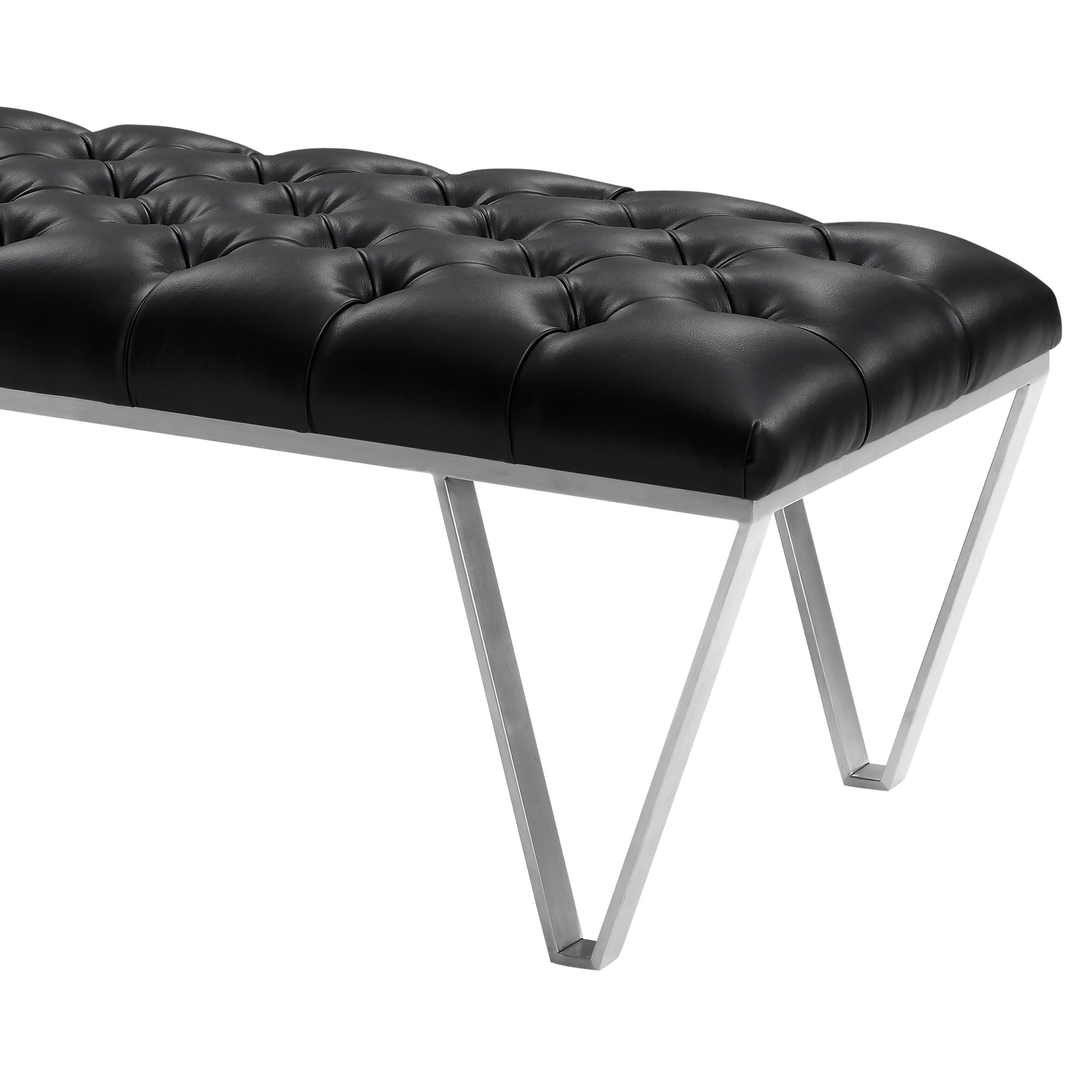 The Armen Living Serene contemporary bench is a beautiful addition to the modern household. This elegant bench sports a beautiful brushed stainless steel frame that is both durable and aesthetically pleasing. The Serene's practical style makes it an ideal fit in just about any room of the house. Plush and stylishly tufted, the Serene offers an exceptional degree of comfort without compromising on appearance.