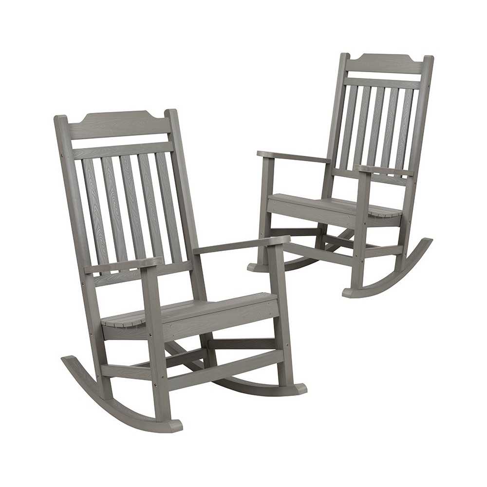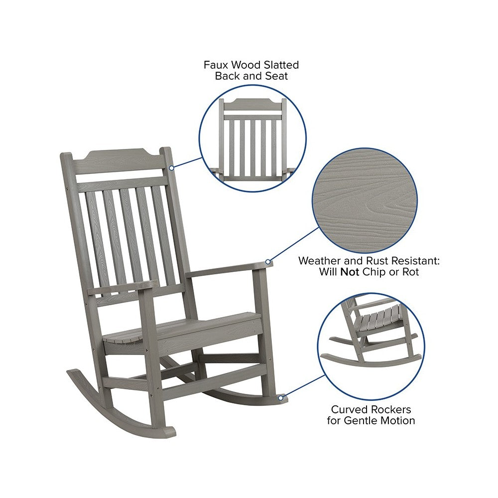 - Set of 2 Gray Faux Wood Rocking Chairs for Indoor or Outdoor Use