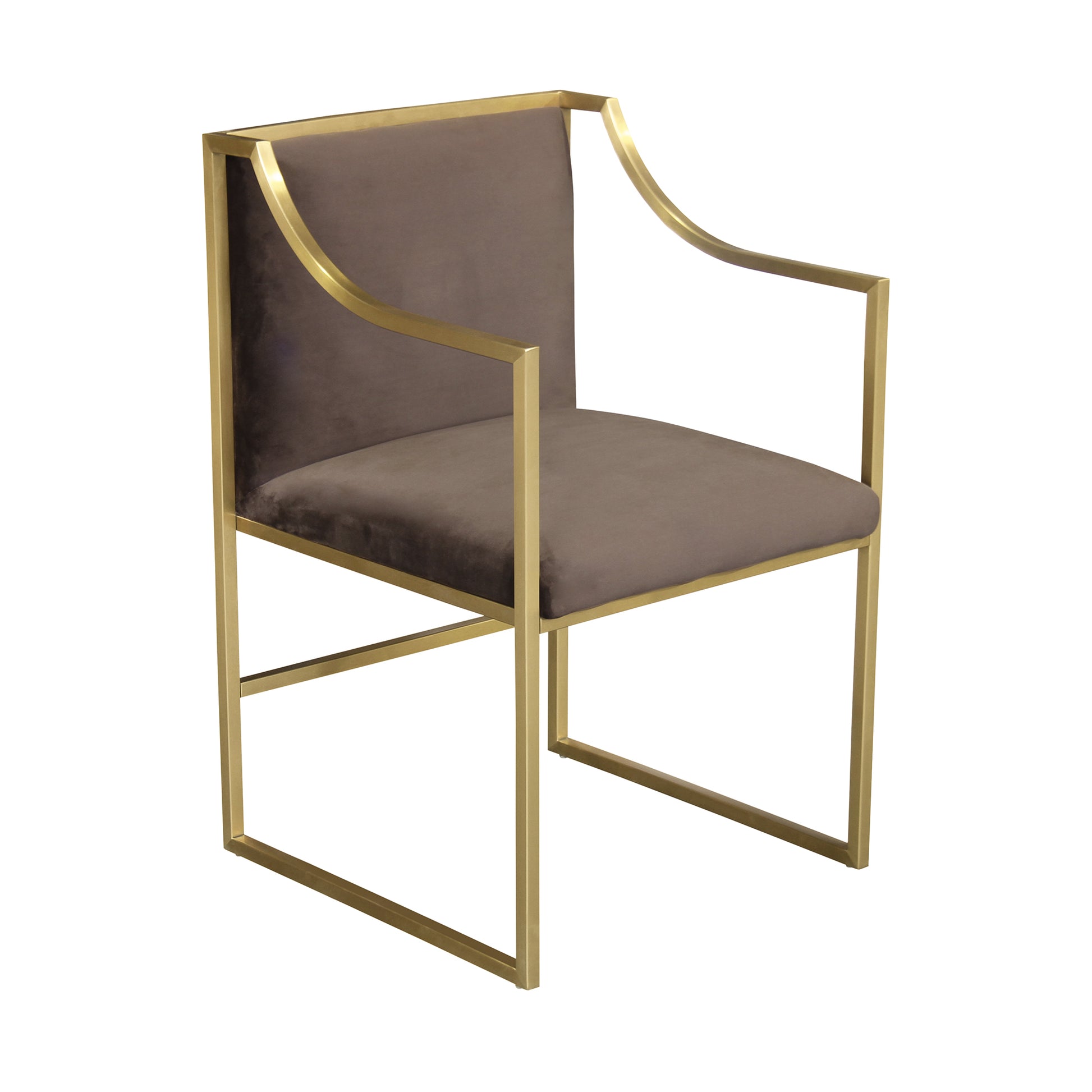 The Armen Living Seville contemporary dining chair is a classy choice for any modern household. This exquisite dining chair boasts a durable brushed gold finished metal frame that features curved arms and a stylish sled leg design. The frame is accompanied by plush fabric upholstery that is sure to leave you feeling relaxed and comfortable. The tall back Seville is an excellent choice for the dining room, but is versatile enough to fit in just about any room of the house.