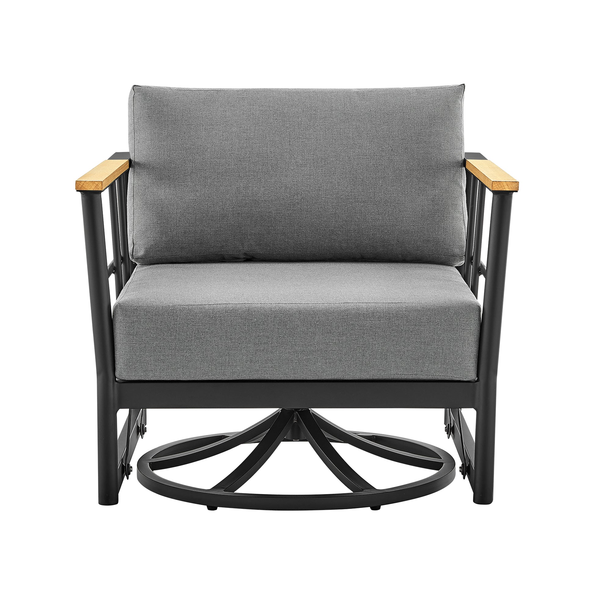 Shari Patio Swivel Glider Lounge Chair in Black Aluminum and Teak Wood