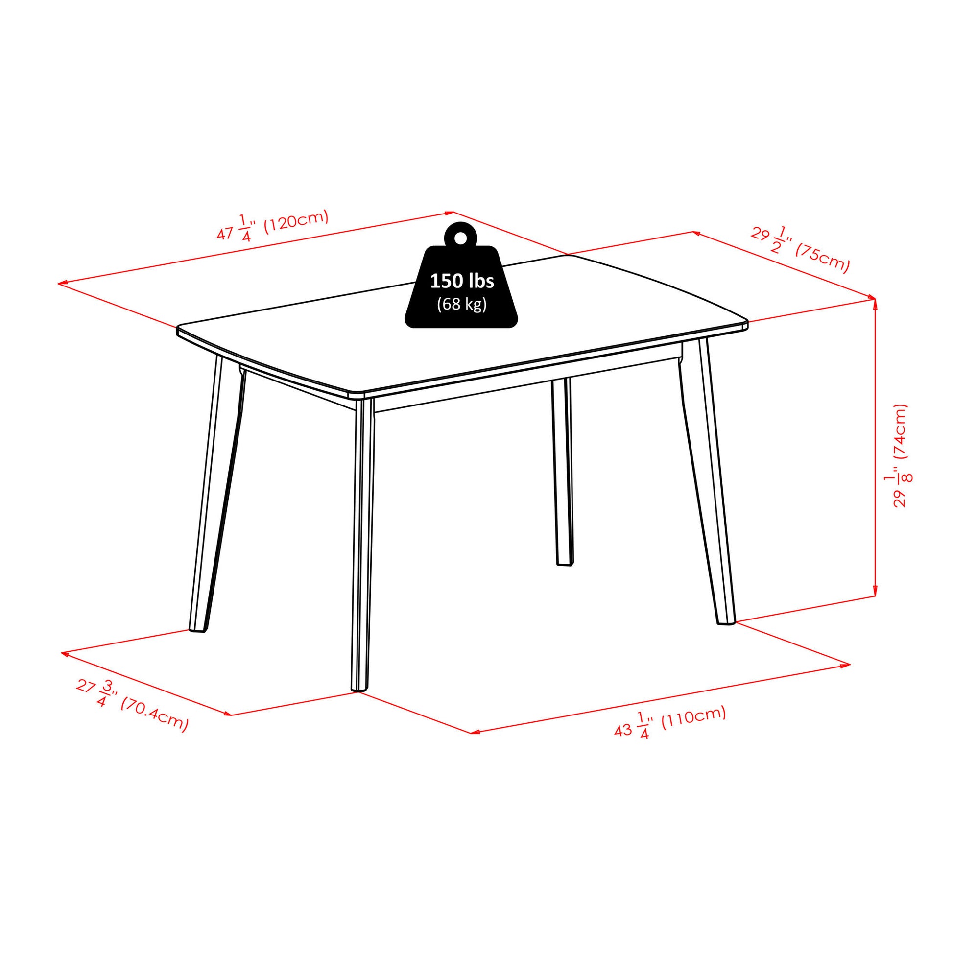 The Shaye Dining Table offers a tabletop that has a gently curved profile set on solid, tapered legs that have a distinctive notch where they meet the frame. The overall look is one of contemporary simplicity with the richness of natural wood grain. The table is constructed of Solid Wood in a lovely Walnut finish.