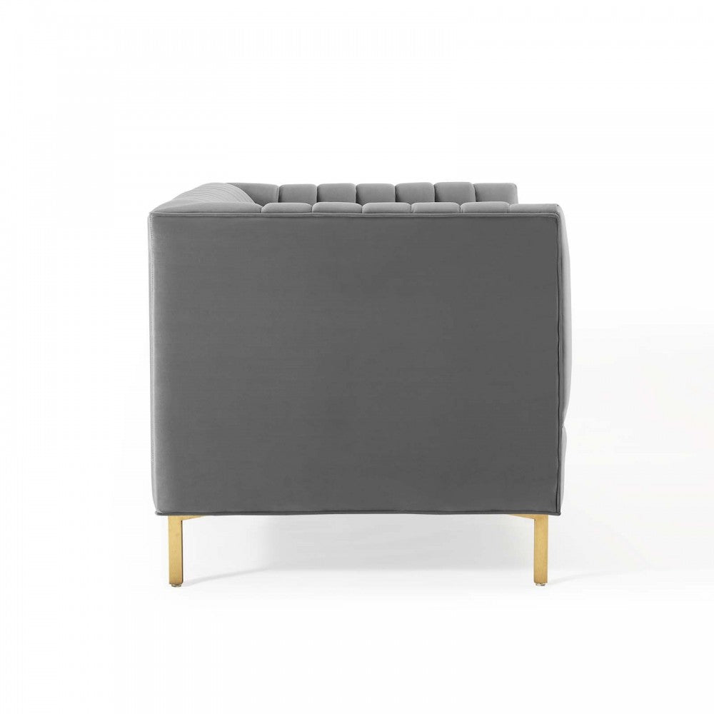 Shift Channel Tufted Performance Velvet Loveseat, Gray
