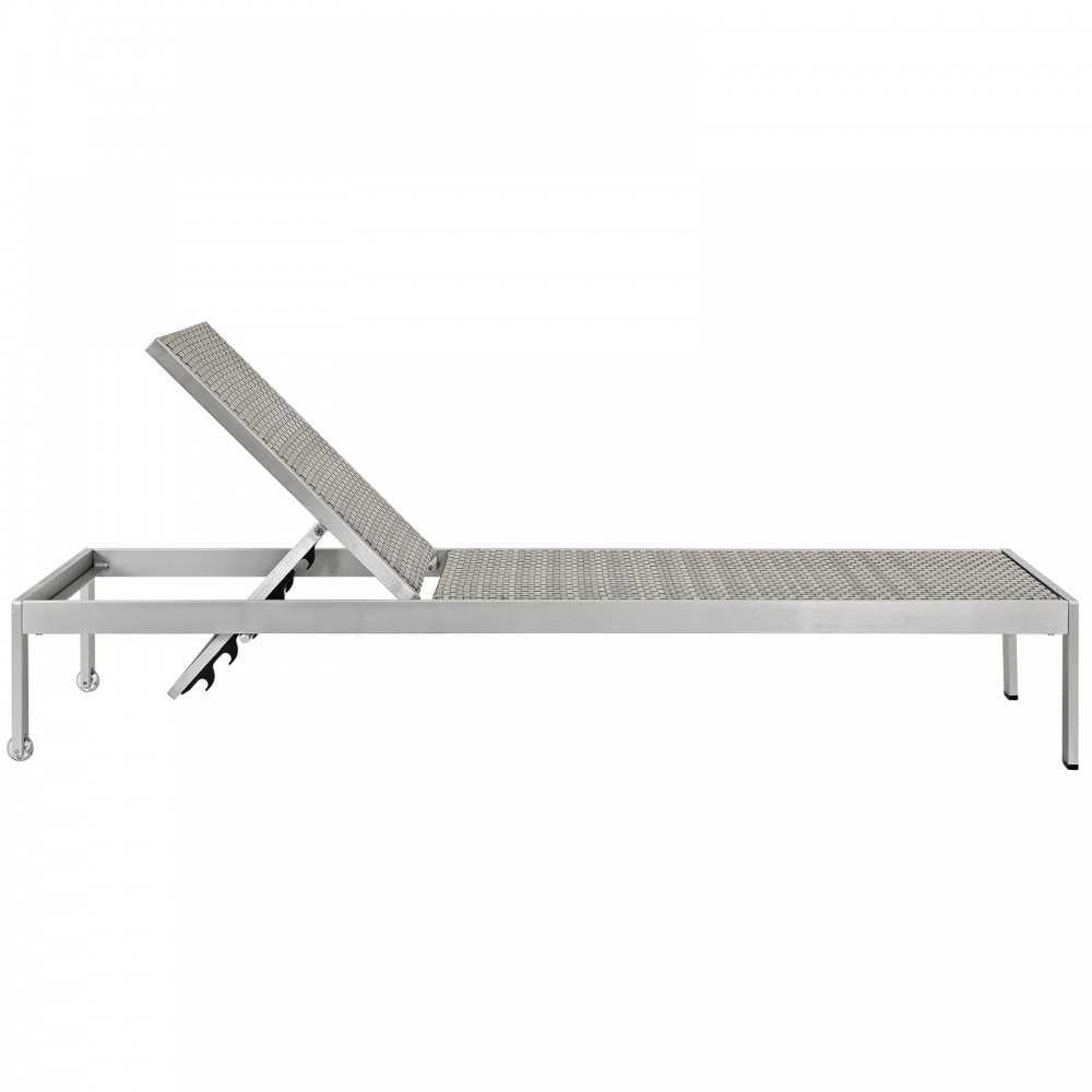 Maintain clean lines with the Shore Outdoor Patio Sun Lounger in Wicker Rattan. Strong and durable, relax in the Shore Wicker Rattan Outdoor Chaise Lounge as you choose from four available recline positions or sunbathe while lying flush. Made with an anodized brushed aluminum frame and two tone brown and gray rattan, Shore Patio Lounge Chair is a breeze to assemble, comes with clear wheels for easy mobility on the top end, and non-marking black plastic foot caps under the bottom two support legs. Chic and minimalist, the Shore Outdoor Sun Lounger is a piece built to last with the comfort and versatility you"™ve been looking for in an outdoor lounger.
