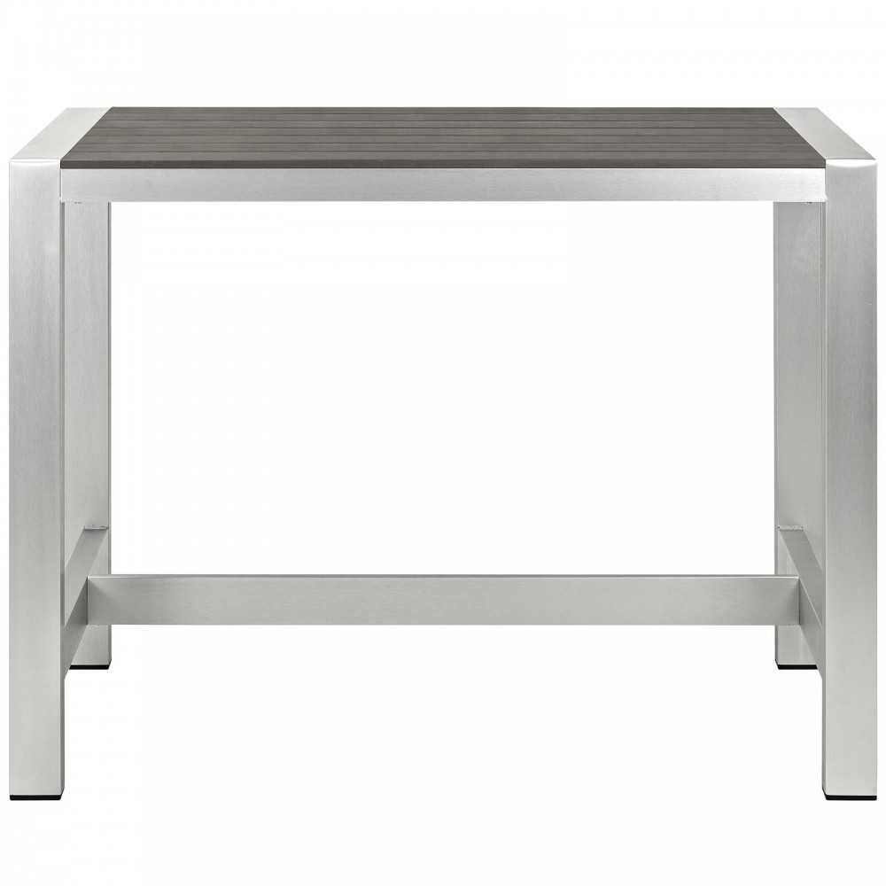 Enjoy your patio or backyard leisure time with the strong and durable Shore Outdoor Patio Bar Table. Made with an anodized brushed aluminum frame and non-marking black plastic foot caps, Shore Patio Bar Table features tone-on-tone grays with wood accents on the paneling for a chic and minimalist look. The Shore Outdoor Aluminum Dining Bar Table complements your casual gatherings with a look and functionality you can rely on.