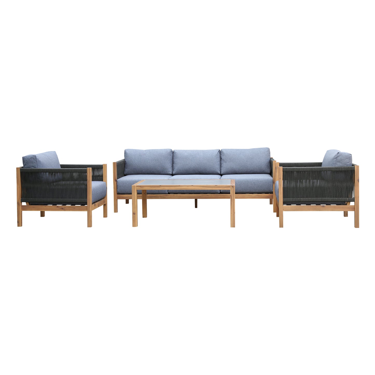 Sienna 4 Piece Acacia Wood Sofa Seating Set with Teak Finish and Grey Cushions