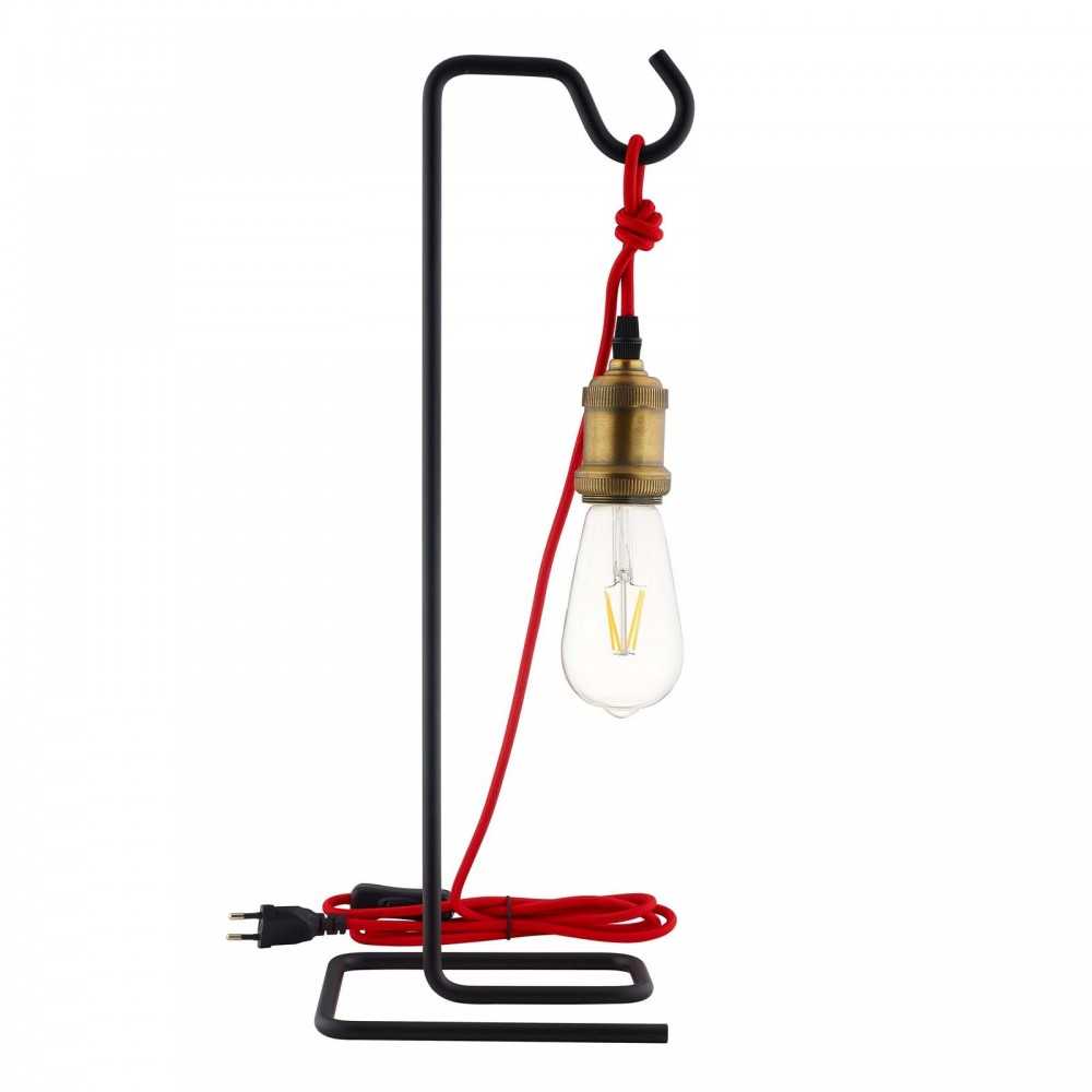 Beckon chic industrial style into your home or apartment with the Signal Table Lamp. Positioned on a sleek matte black metal base, Signal comes with an antique brass light socket suspended from a red cord for an antique vintage look. This rustic modern farmhouse table lamp is a unique addition to the living room, bedroom, home office, or entryway. Requires one E26 40W light bulb (not included).