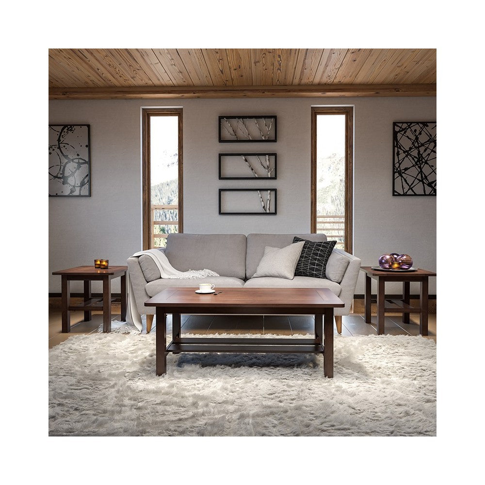 The straight-lined contemporary design of the accent table collection features a rich finish and stylish detailing to create an exciting collection that is sure to enhance the look of any living room decor. The medium brown finish flows smoothly over the straight legs and etched table top details to bring out the unique beauty of this contemporary collection. With ample table top space and plank style lower shelves, these tables are an exceptional addition to any home environment. Enhance your home's style with the rich contemporary flavor of the accent table collection. [FSD-TS3-35MB-GG]