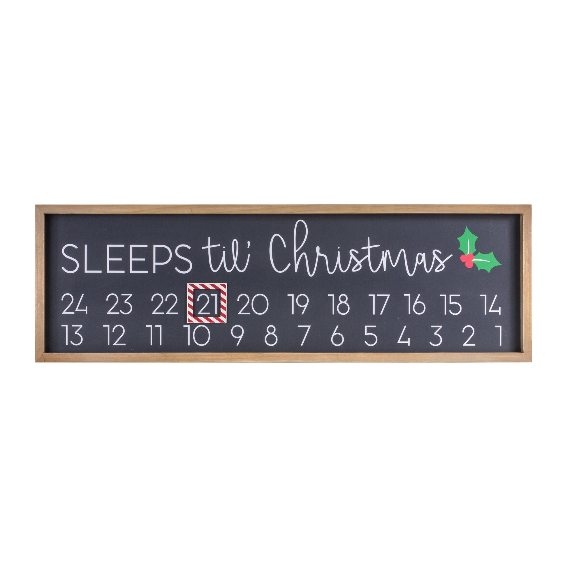 Count down the days until Christmas with this beautiful Christmas Countdown Sign. Featuring the sentiment "Sleeps Til Christmas", the classic black finish paired with the natural wooden frame and holly leaf accent makes the piece a great addition to any style of holiday decor. The quality fir wood and MDF composition is sure to last for seasons to come. Display the piece in your living room, kitchen, or other high-traffic areas of your home to be sure you can count down each day at a time.