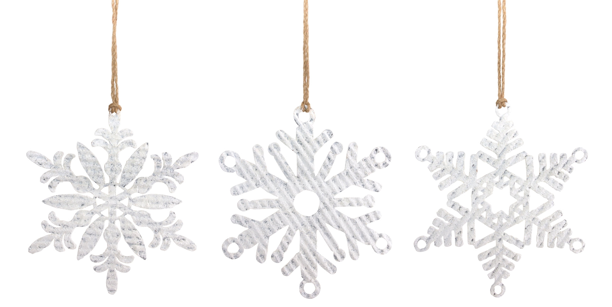 Adorn your Christmas Tree with this beautiful set of Metal Snowflake Ornaments. Featuring three assorted designs and twelve total pieces, the traditional snowflake design paired with the quality iron metal composition makes this piece the perfect addition to your holiday tree decor. They can be used as Christmas gifts for friends to cherish, or you can display the set on your own tree and enjoy them for years to come.