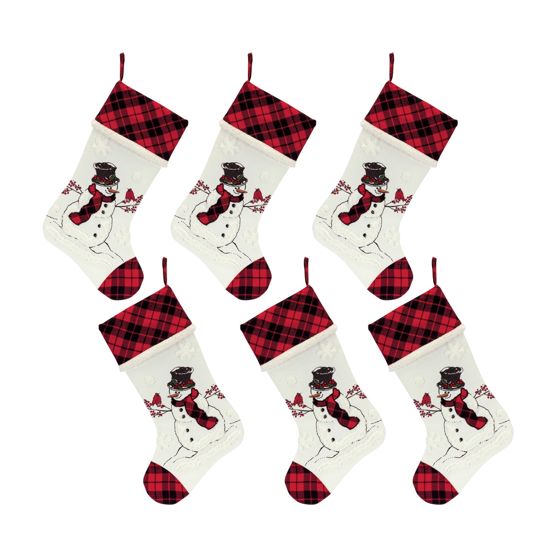 Adorn your Christmas Tree or fireplace mantle with this beautiful set of Snowman Stockings. The whimsical snowman character paired with the bold red and black plaid accents makes this set the perfect addition to your holiday decor. The quality polyester composition is sure to last for seasons to come. The pieces can be used as gifts for friends to cherish, or you can display the set in your own home and enjoy them for years to come.