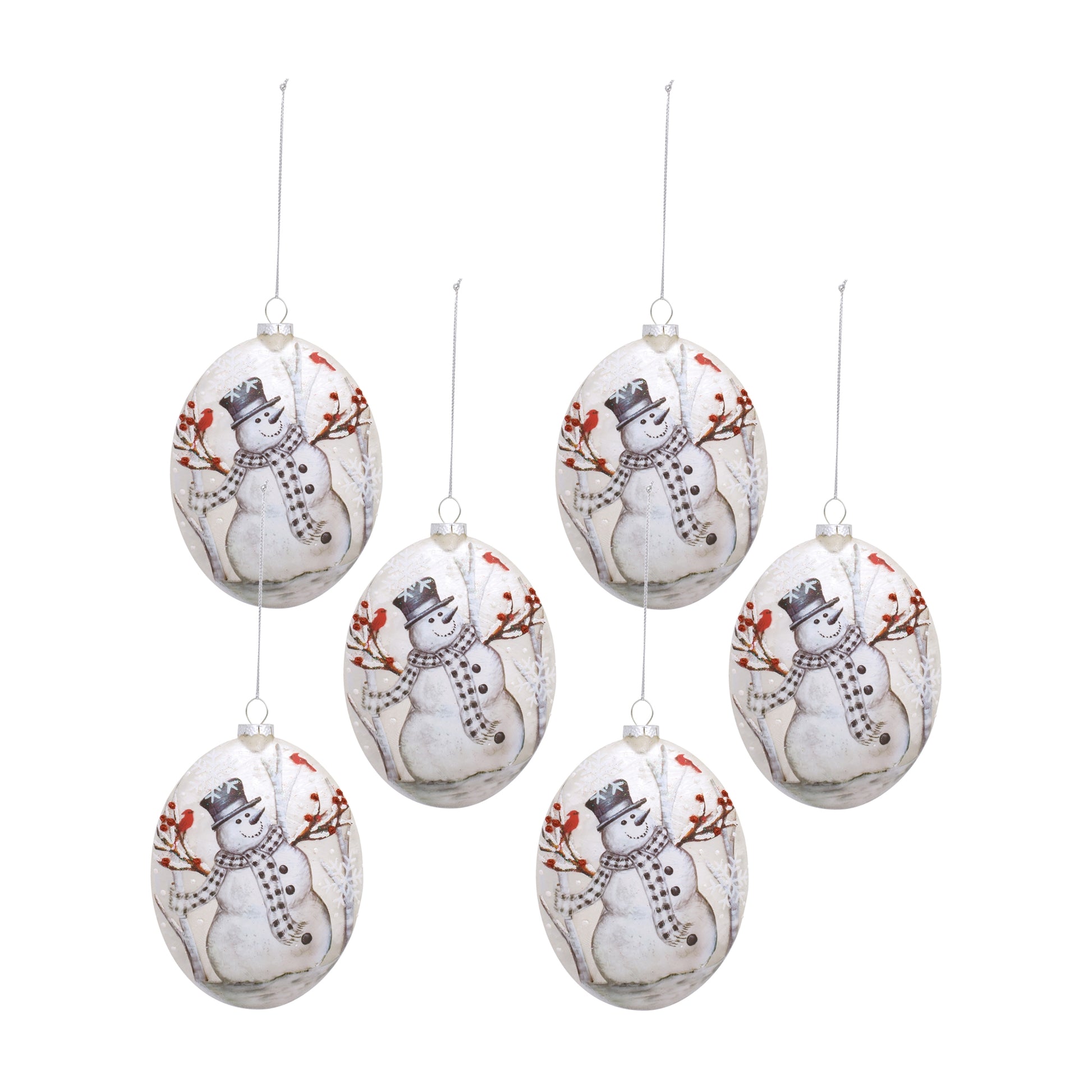 Snowman Disc Ornament (Set Of 6) 5"D Glass
