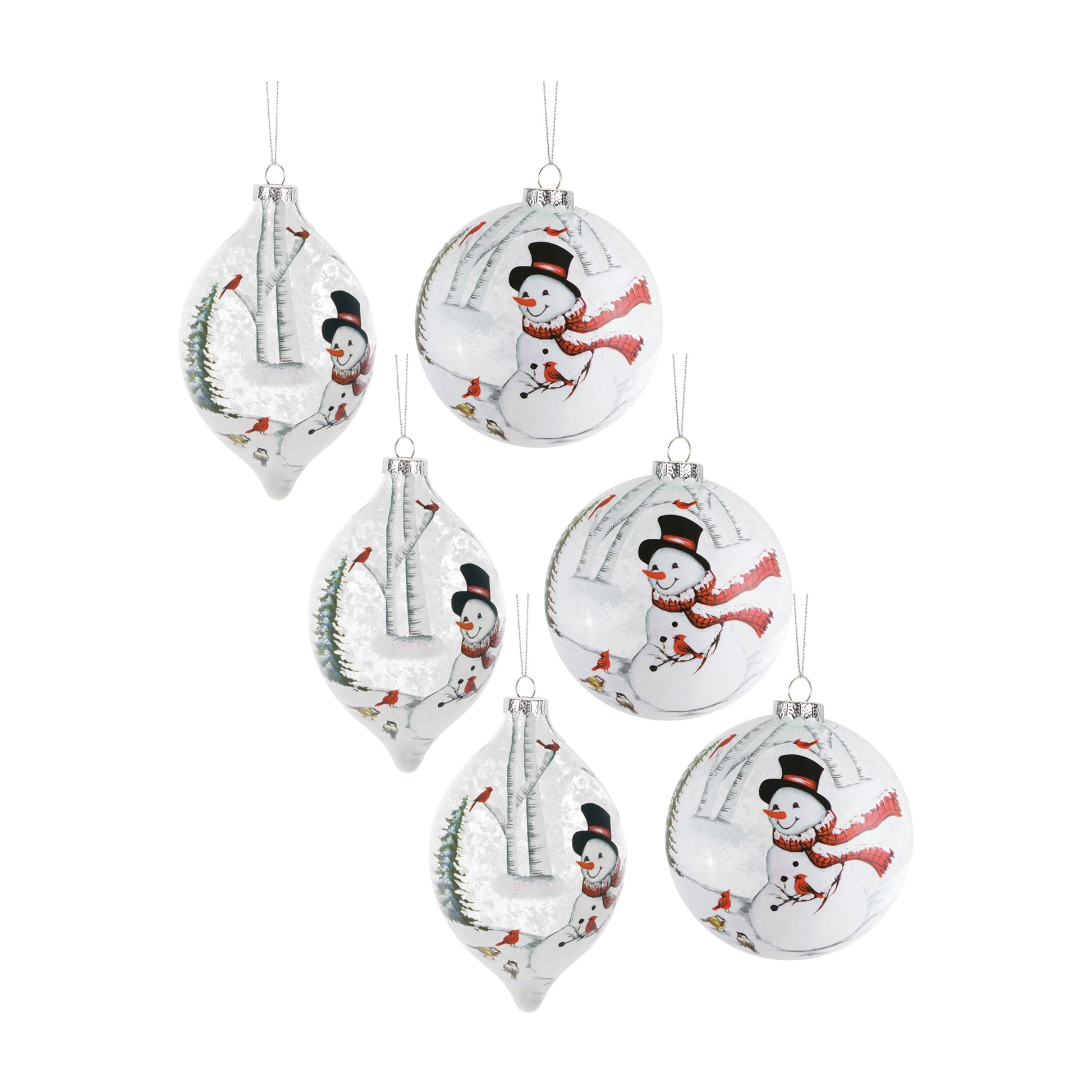 Adorn your Christmas Tree with this beautiful set of Snowman Ornaments. Featuring two assorted designs and six total pieces, the whimsical snowman design paired with the traditional ball and onion ornament design makes this piece the perfect addition to your holiday tree decor. They can be used as Christmas gifts for friends to cherish, or you can display the set on your own tree and enjoy them for years to come.