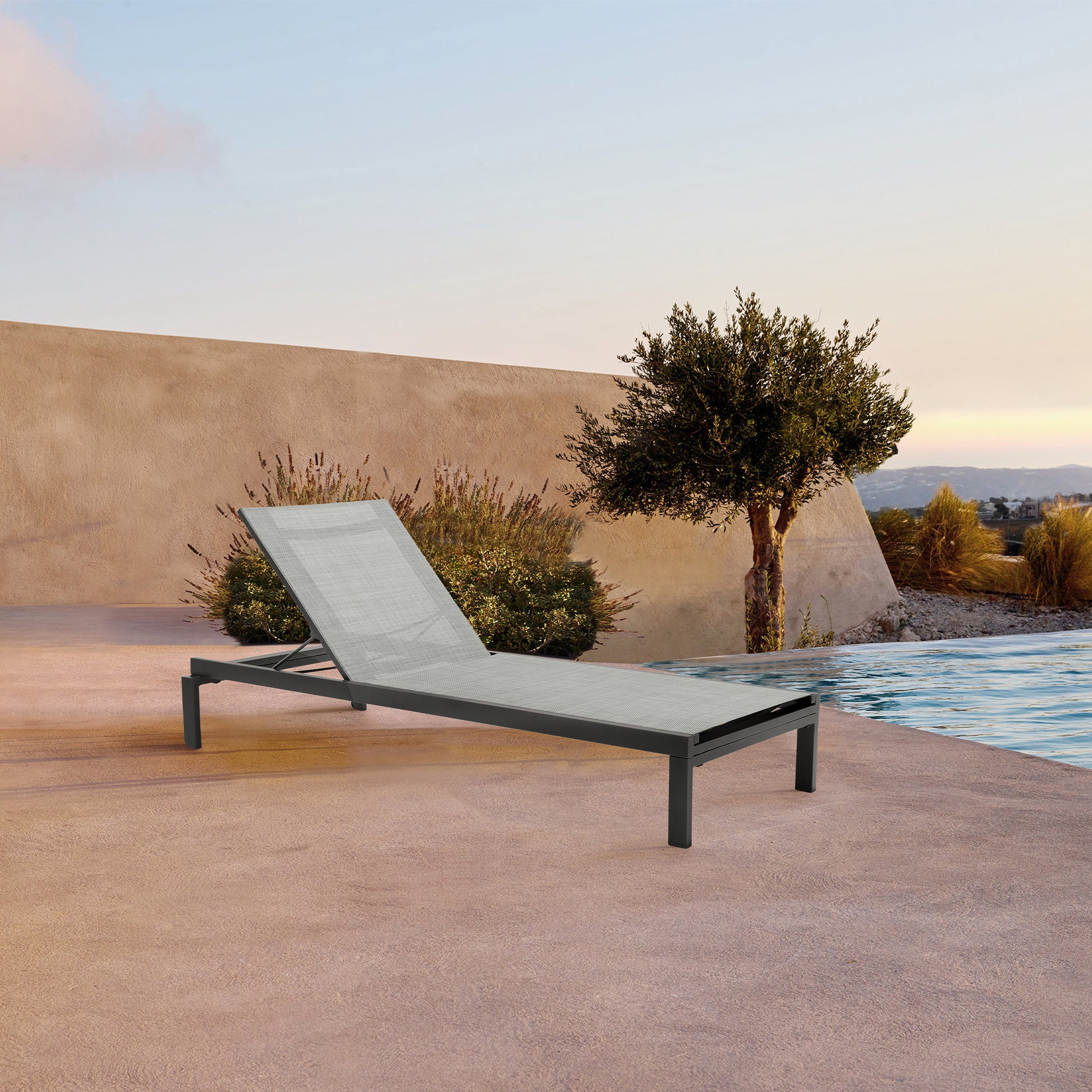 Solana Outdoor Dark Grey Aluminum Stacking Chaise Lounge Chair