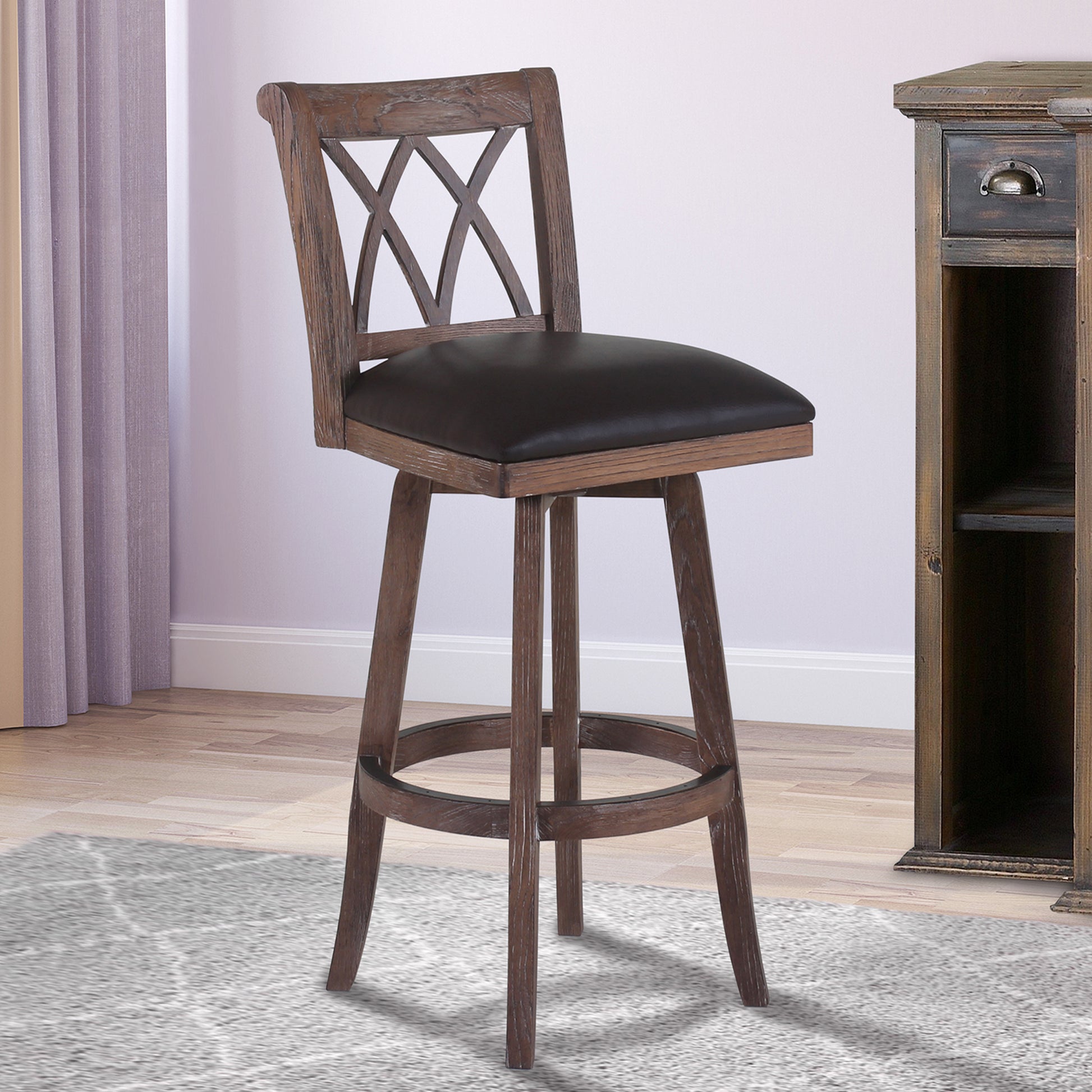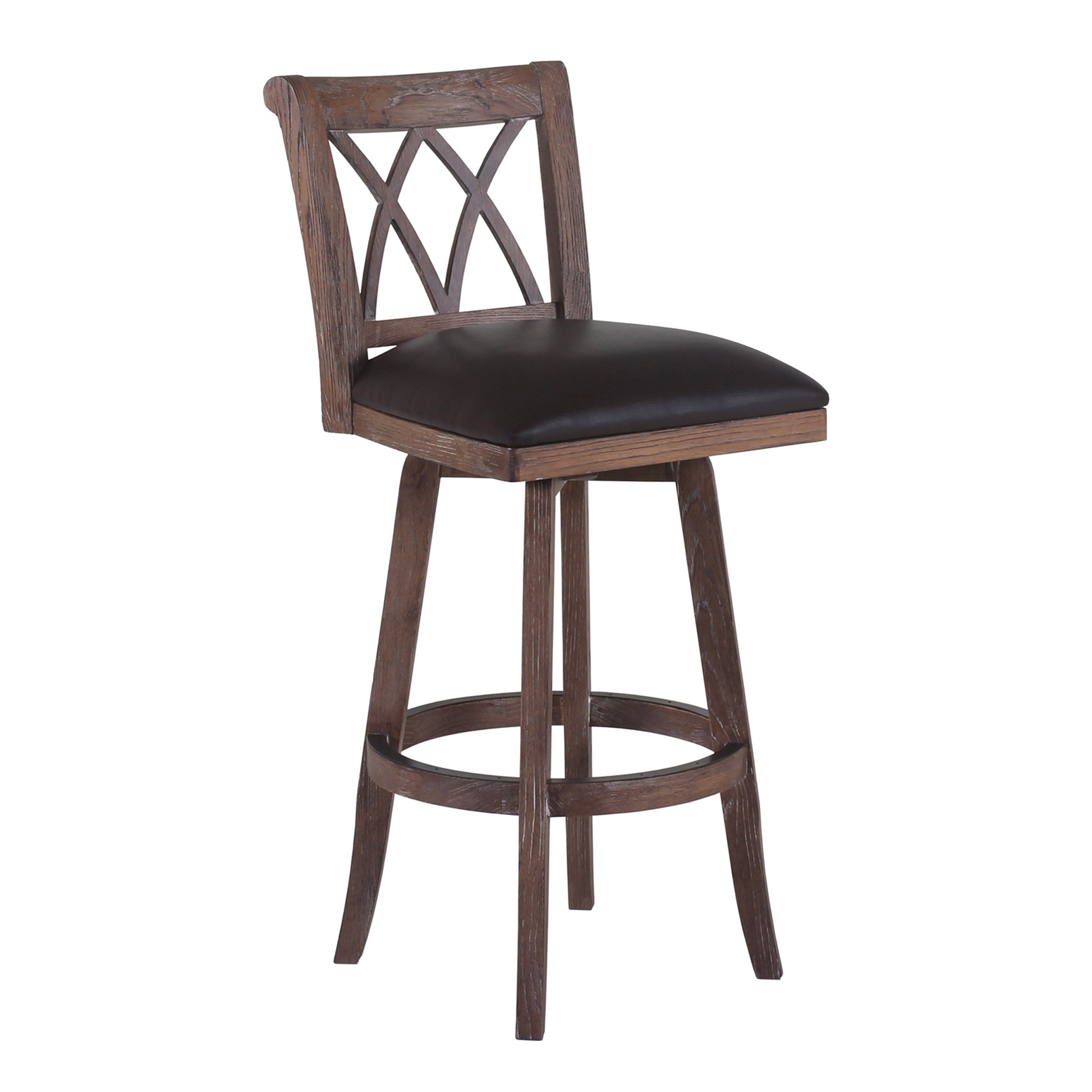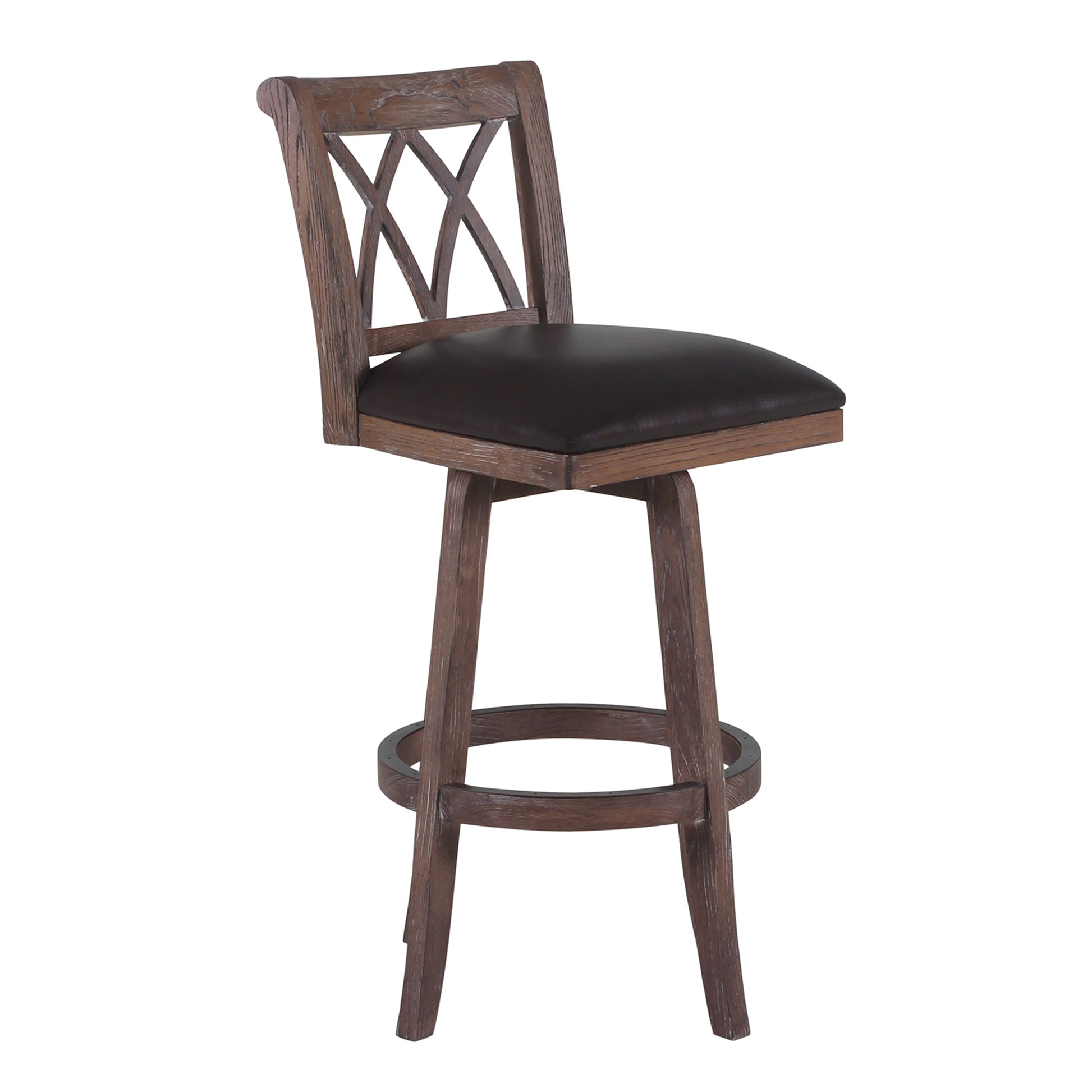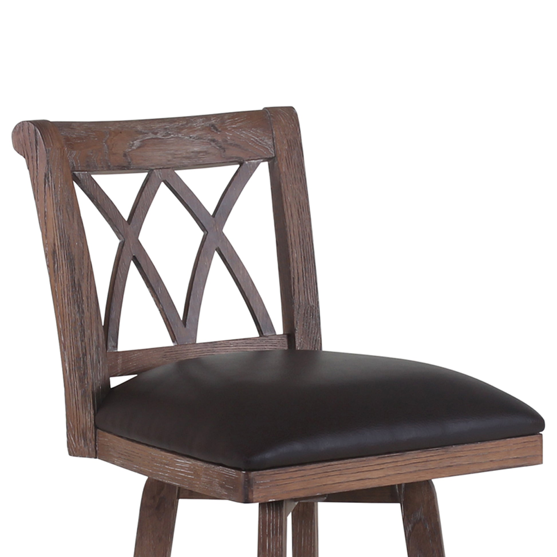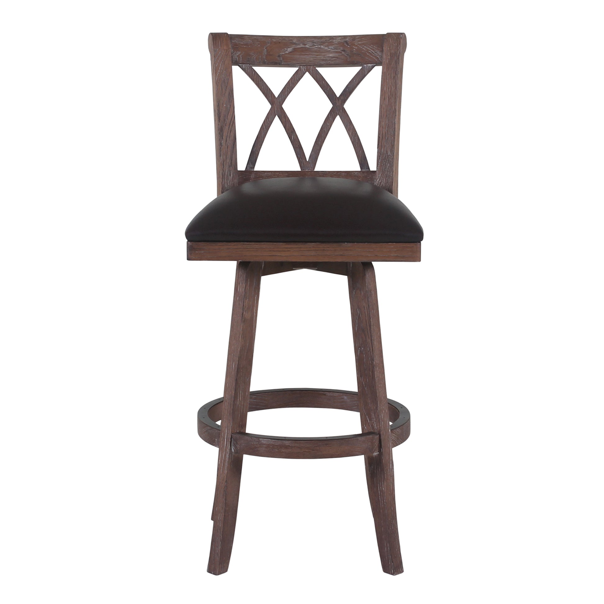 Wine and dine while seating at our tastefully crafted Sonoma Swivel Wood Barstool. This is no ordinary barstool because it transforms your living space into a Heaven in style. It features a double swooping effortless “X" back detail and a wide seat upholstered in Brown Faux Leather. Featuring a Wire-Brushed Brown wood frame with flawless finish, our counter or bar stool elevates transitional and modern décor. It's round footrest make swiveling on this barstool fun in your dining area, bar, or game room.