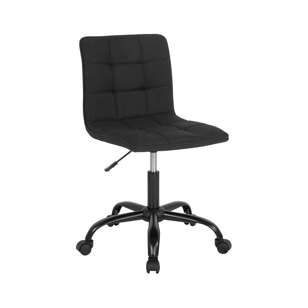 This functional chair has beauty and style and would complement your home or office. This black fabric upholstered task chair is adjustable and comfortable, with sumptuous tufted padding in the seat and back. Chair rotates 360 degrees to provide easy access to a greater range of area. A pneumatic seat height adjustment lever lets you easily position the chair at a height that is most comfortable for you. The dark frame and casters create a contrasting detail between the fabric upholstery and metal base. This fashionable task chair will make a great addition, whether it is the focal point or an attractive accent. [DS-512C-BLK-F-GG]