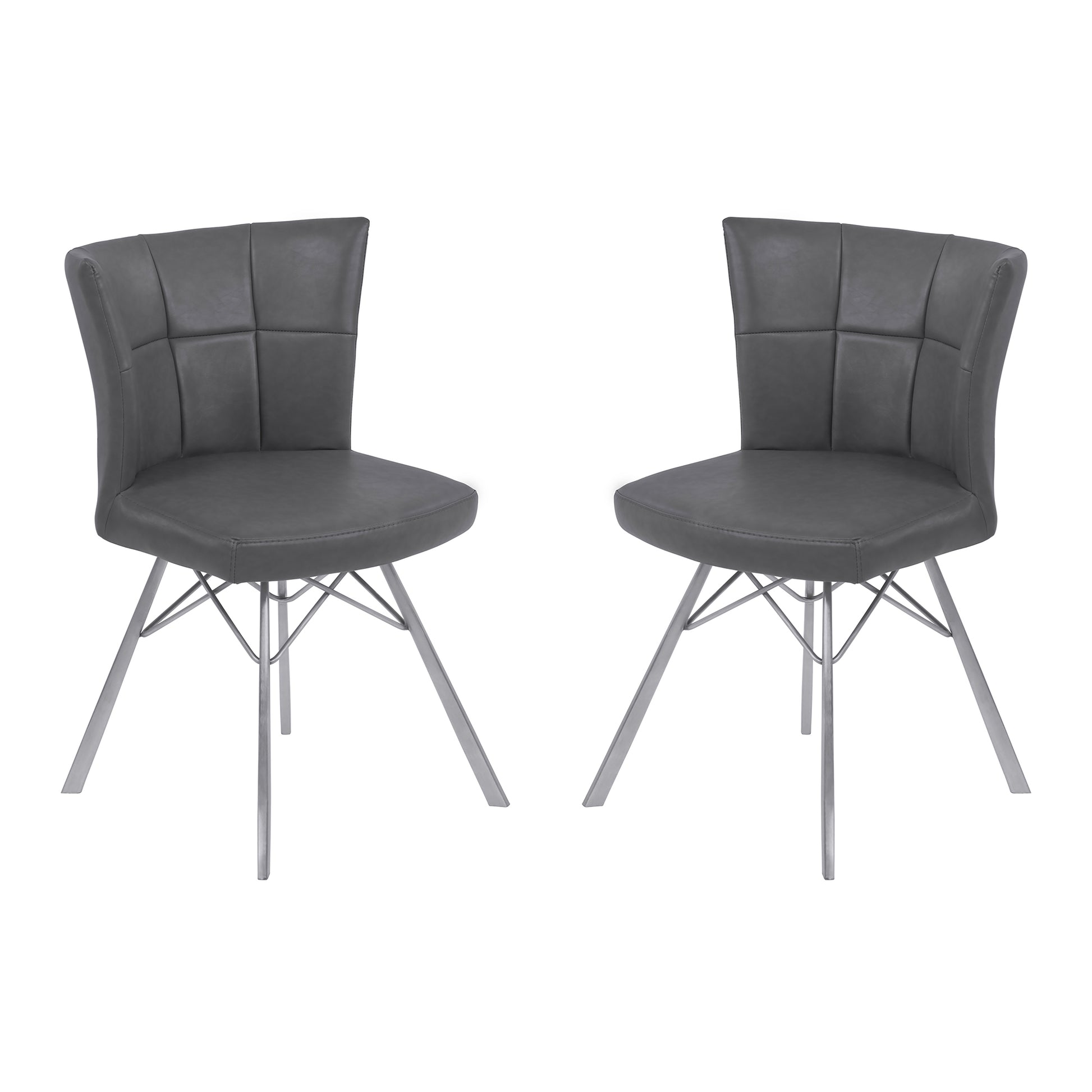 Spago Contemporary Dining Chair in Vintage Gray Faux Leather - Set of 2