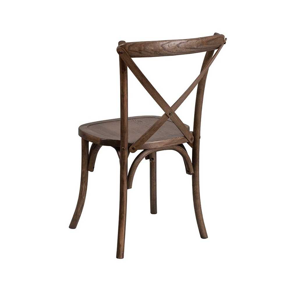 The Cross Back Chair creates a charming and inviting ambiance with its curved lines and smooth finish. The designer cross back adds a modern, yet classic appeal to your dining room. Constructed of ash wood and a beautiful Early American finish, this chair is very lightweight, yet extremely strong and wobble-free. These beautiful chairs ship fully assembled, can hold up to 400 pounds and can be stacked 8 high for storage. Designed for commercial and residential use, this durable and attractive bistro style chair is a great choice for your restaurant or dining room at home. [XU-X-EA-GG]