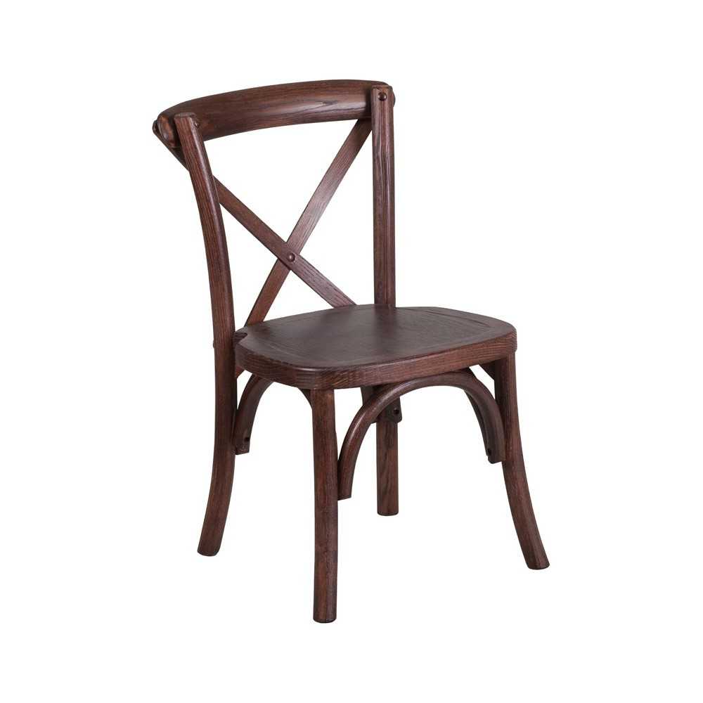 This Kid Sized Cross Back Chair creates a charming and inviting ambiance with its curved lines and smooth finish. The adorable cross back chair is constructed out of ash wood in a beautiful Mahogany finish. This chair is very lightweight to easily go from room to room. These beautiful chairs ship fully assembled and can be stacked 8 high for storage. Designed for commercial and residential use, this durable and attractive bistro style chair is a great choice for your restaurant or dining room at home. [XU-X-MAH-KID-GG]