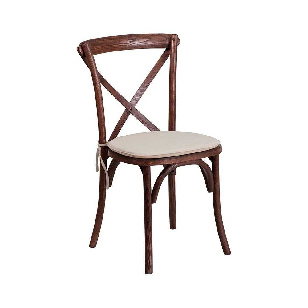 Stackable Mahogany Wood Cross Back Chair with Cushion