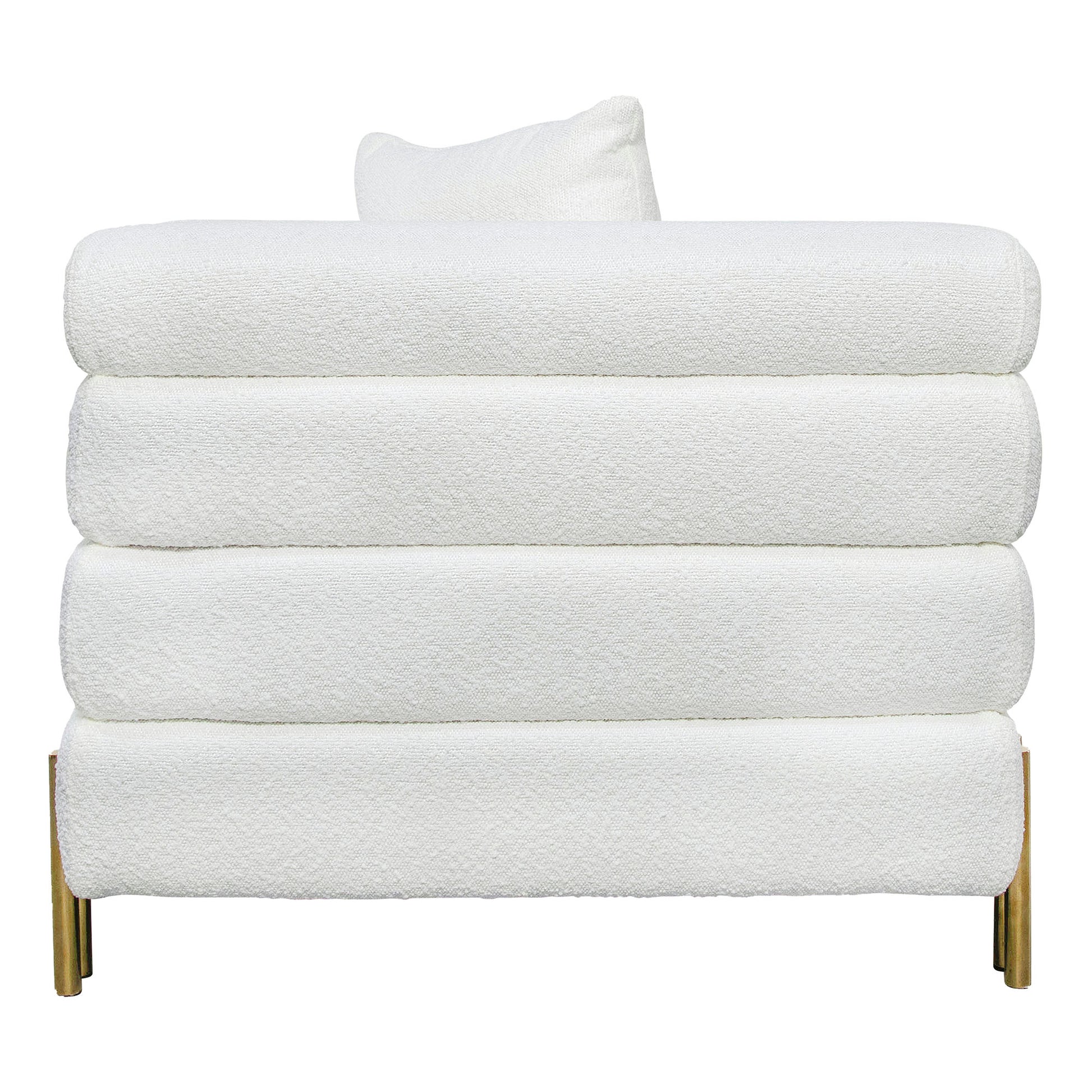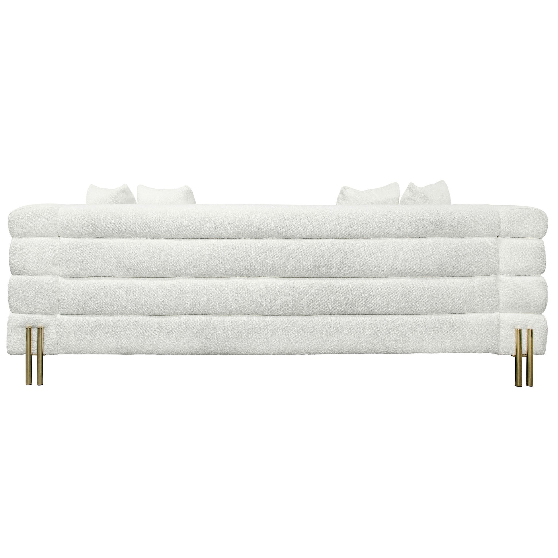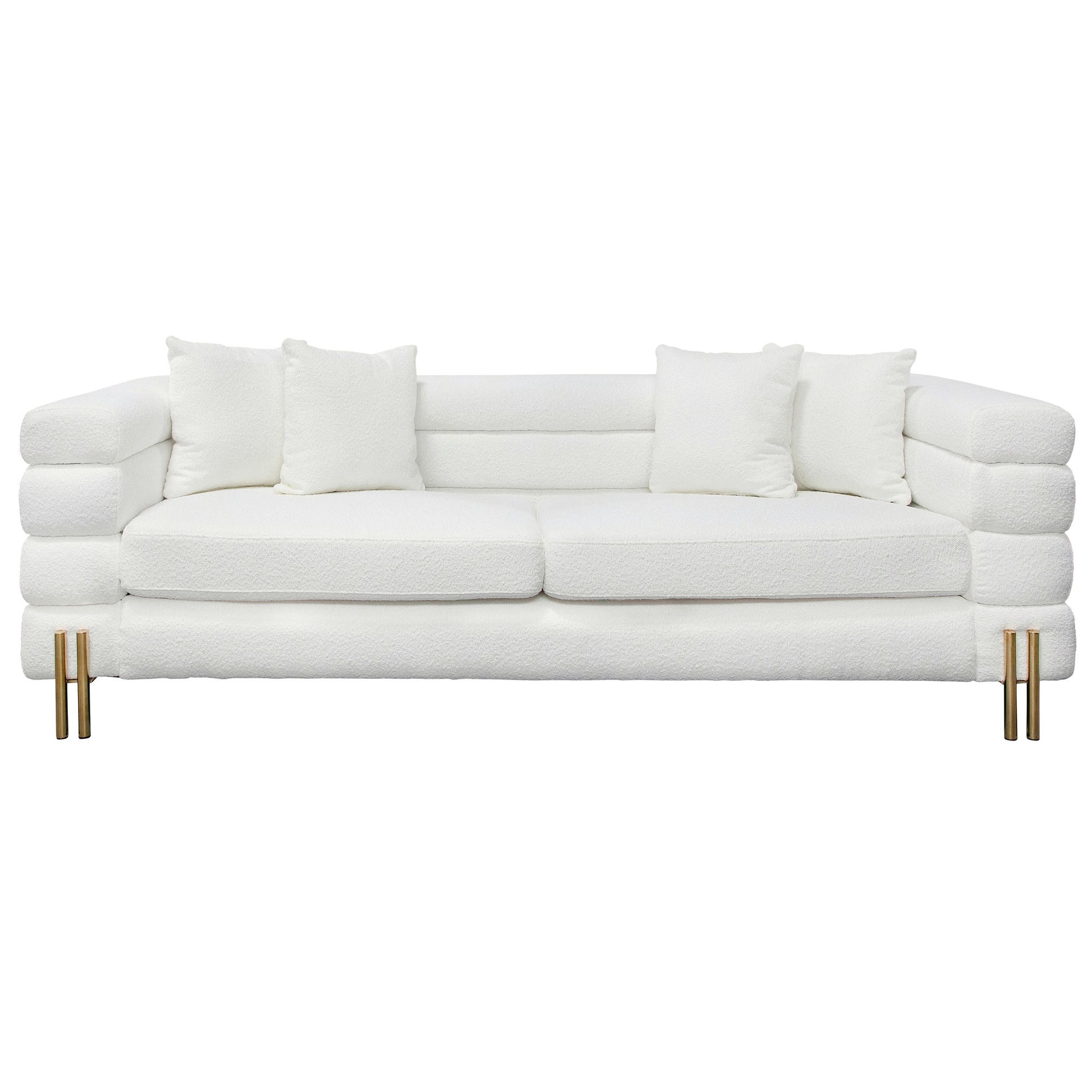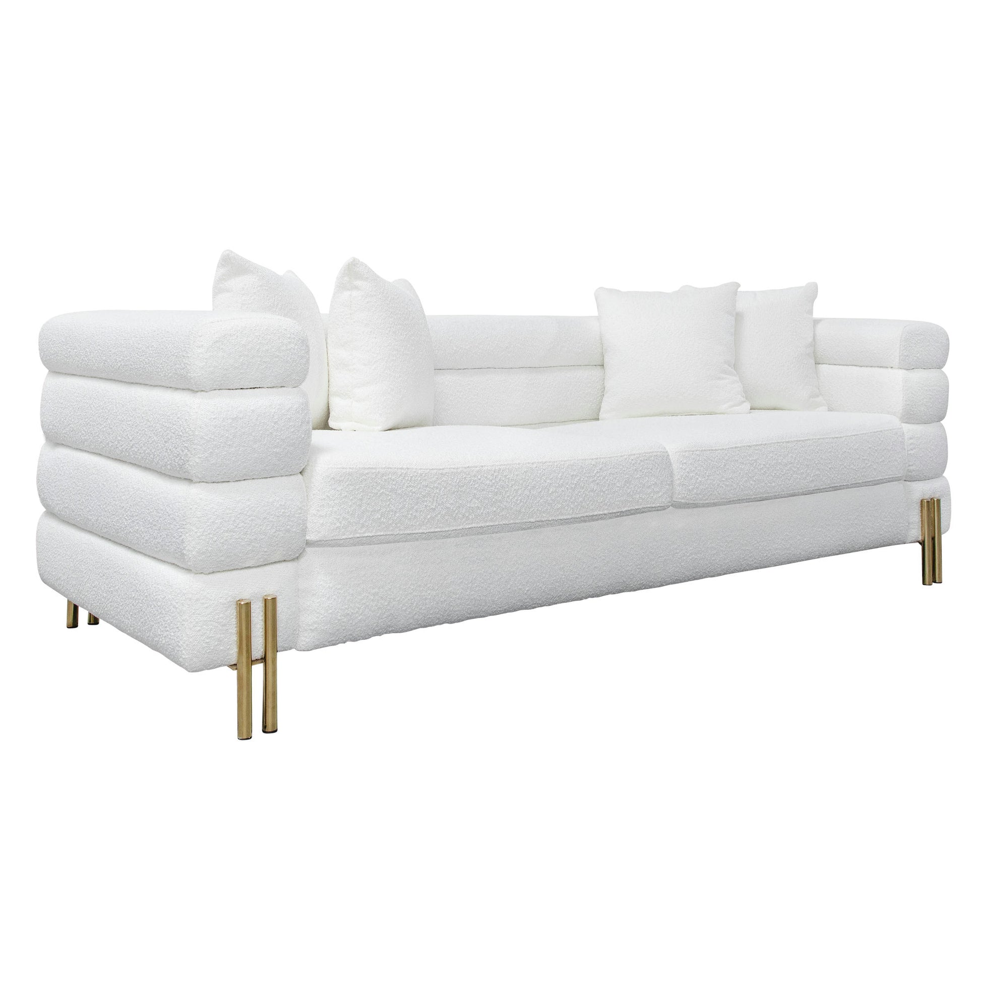 Add some glam to your living room with this stunning sofa. The legs of the sofa and gold stainless steel. This sofa has a white fabric.Sagebrook Home has been formed from a love of design, a commitment to service and a dedication to quality. They create and import fashion forward items in the most popular design styles. Backed with years of experience in the textile field, They are now providing a complete Home decor story. the combination of wall decor, furniture, lighting and Home accessories are all coordinated with textiles to provide a complete Home look. Sagebrook Home is committed to providing the best Home decor and accent pieces at value prices.