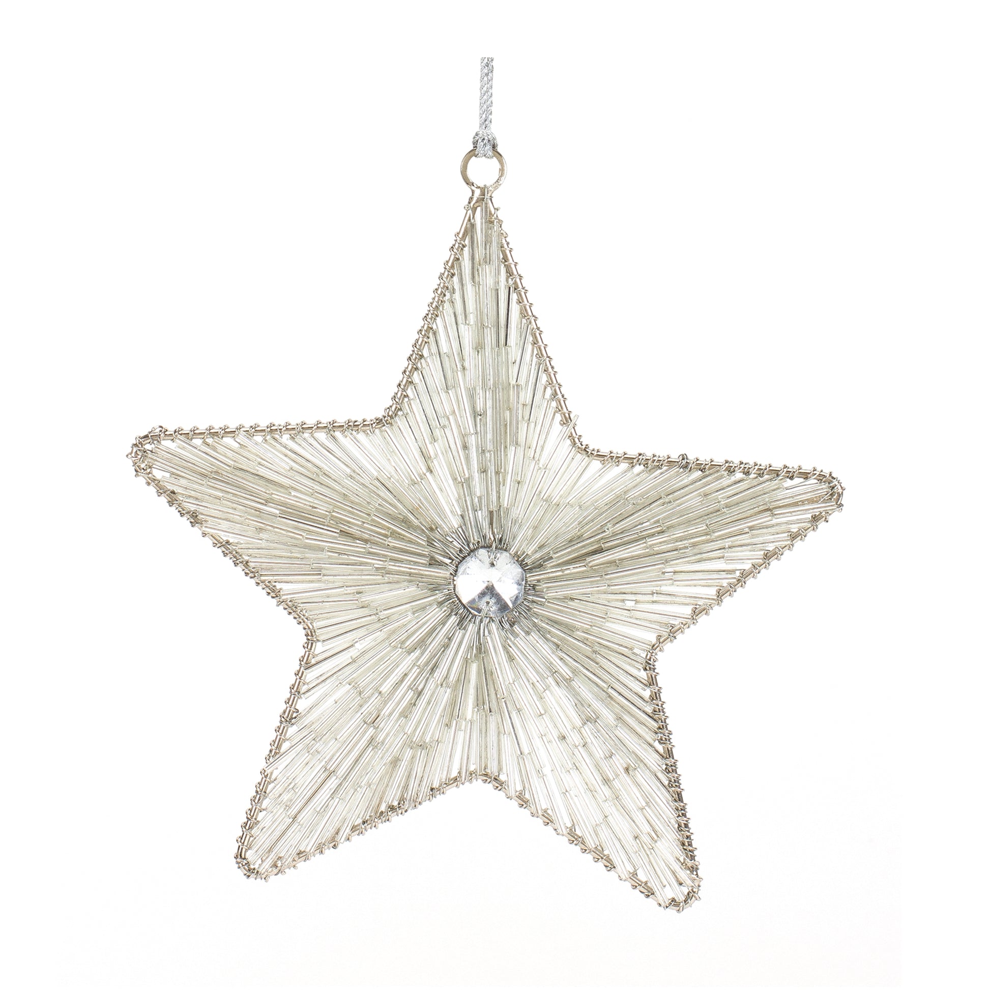 Adorn your Christmas Tree with this beautiful set of Star Ornaments. The traditional star shape paired with the chic silver finish with glass bead accents makes this set the perfect addition to your holiday tree decor. The quality iron metal composition is sure to last for seasons to come. The pieces can be used as gifts for friends to cherish, or you can display the set on your own Christmas tree and enjoy them for years to come.