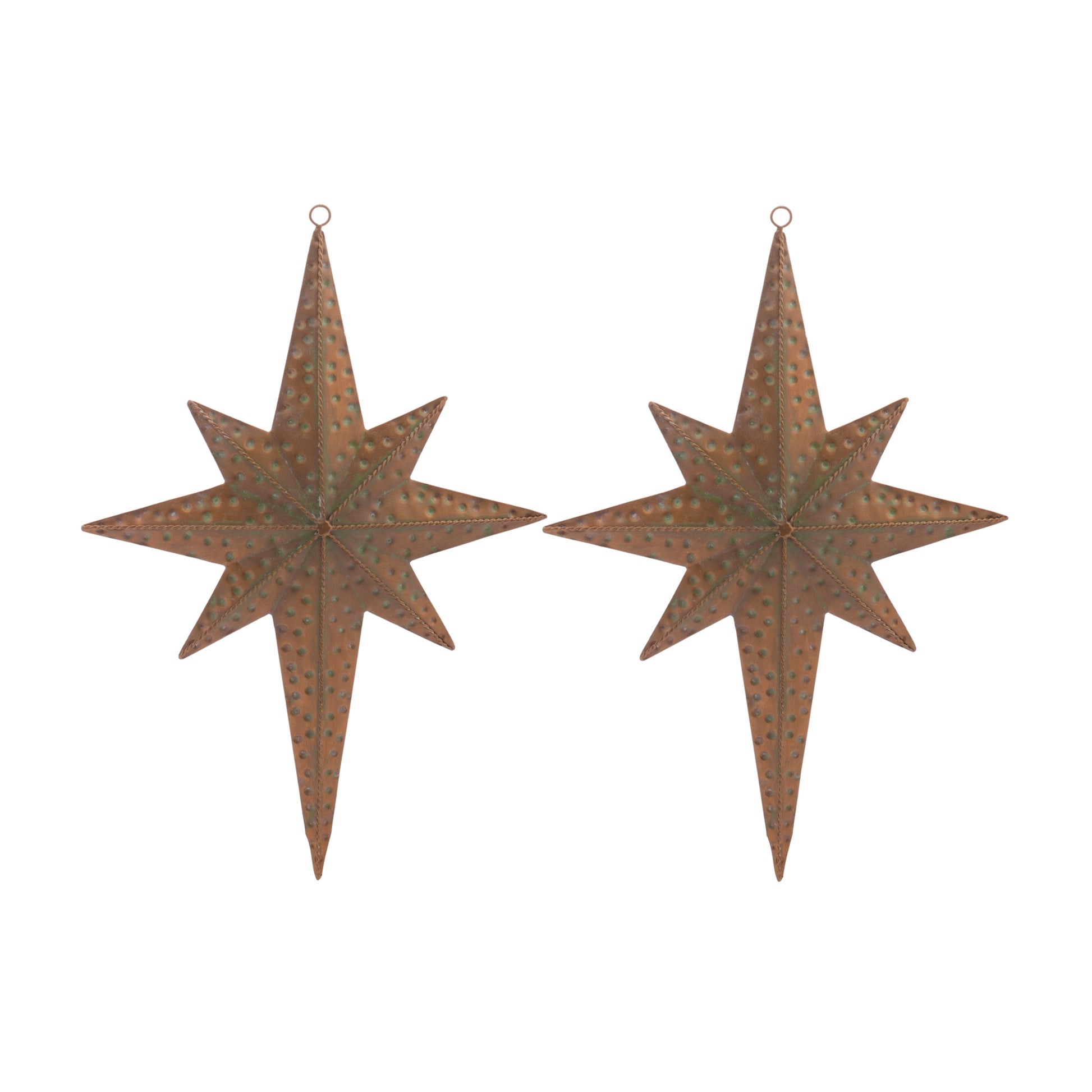 Adorn your Christmas Tree with this beautiful set of Metal Star Ornaments. Featuring two pieces, the traditional North Star design paired with the rustic metal finish makes this piece the perfect addition to your holiday tree decor. They can be used as Christmas gifts for friends to cherish, or you can display the set on your own tree and enjoy them for years to come.