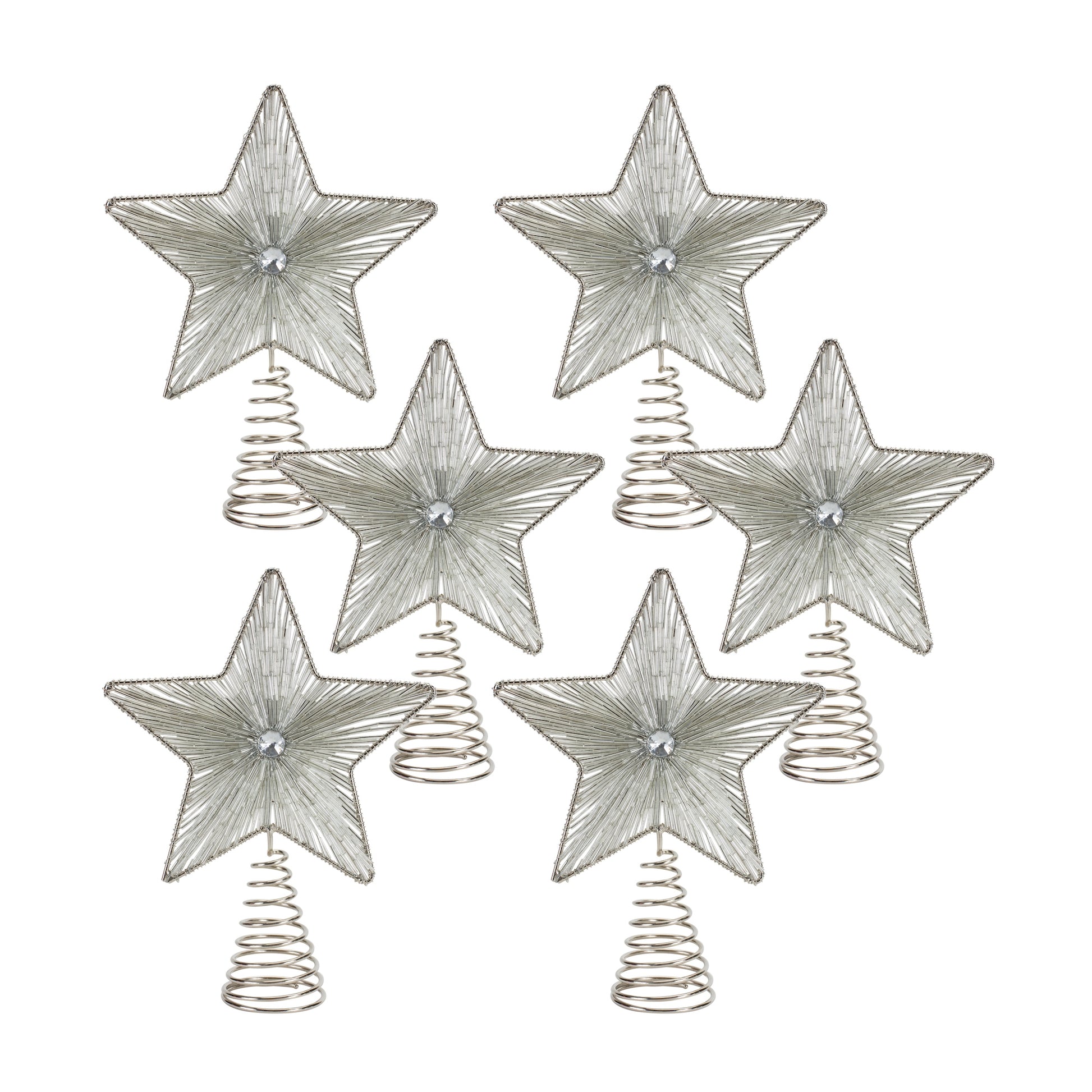 Star Treetop (Set Of 6) 7"D x 9.25"H Iron/Glass Bead