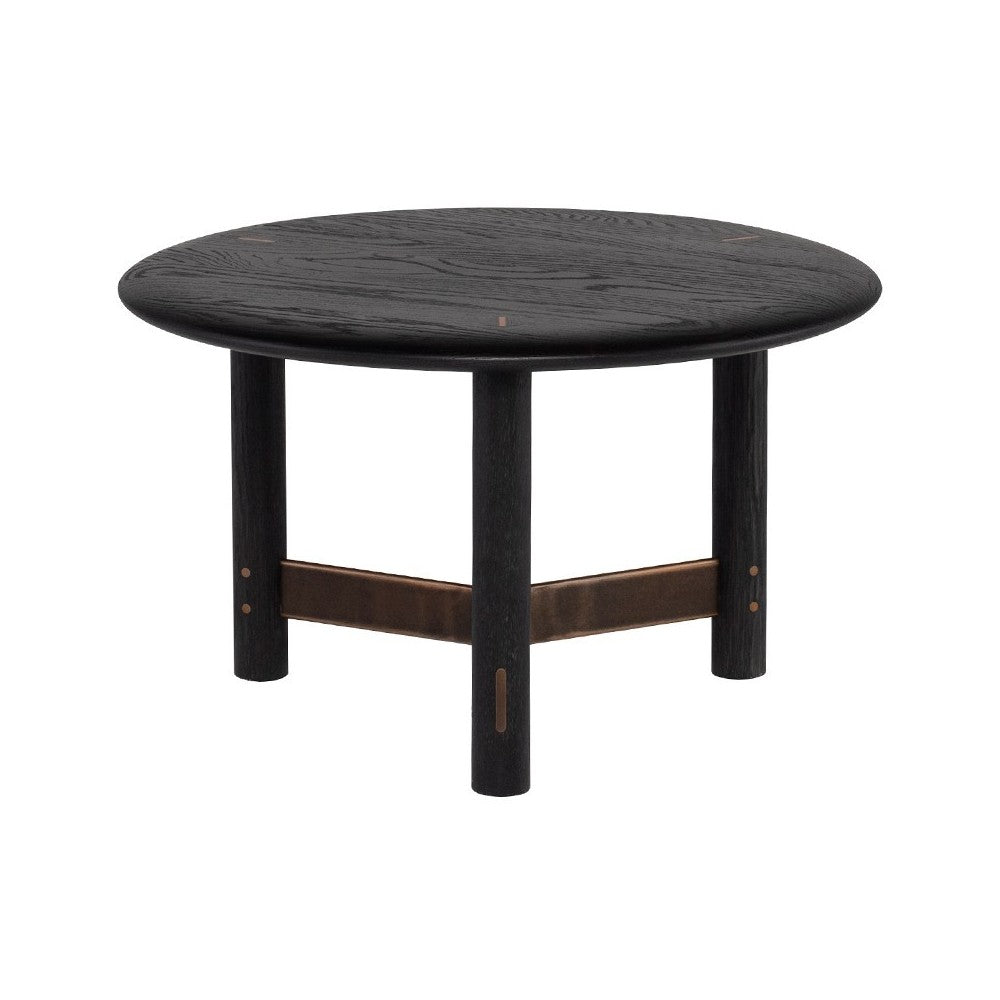 A delicate balance between understated clarity and intuitive elegance, the Stilt coffee table features round ebonized oak shape. With such minimalism design, the Stilt shows that sometimes less is more.
