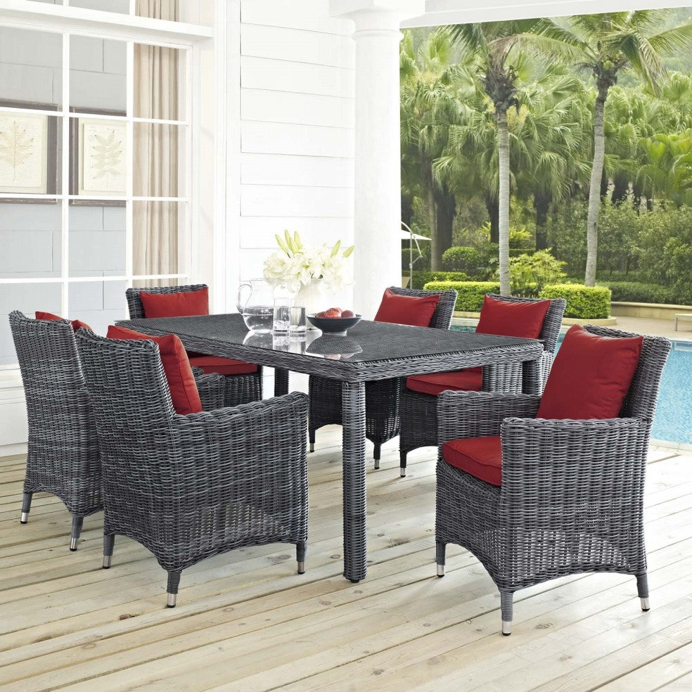 Summon 7 Piece Outdoor Patio Sunbrella Dining Set, Canvas Red
